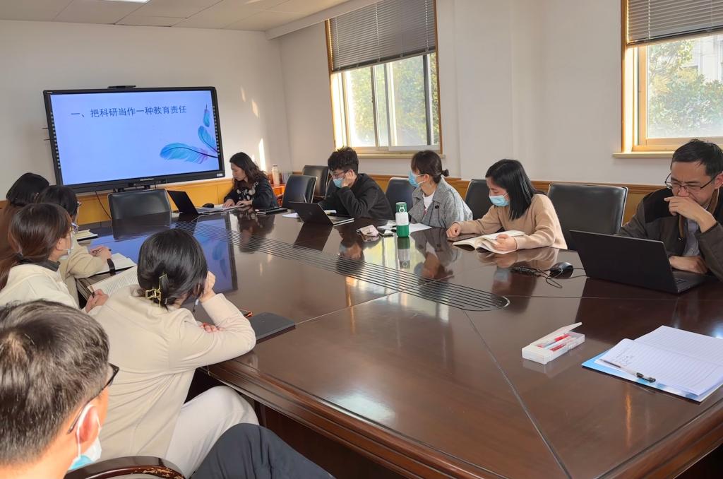 两位徒弟代表从不同视角入手,与大家分享了自己的阅读体会与收获。耿旭兰老师认为要把科研当做一种教育责任,时刻抱有一颗好奇之心,多阅读、多观察、多思考,让自己处于主动状态并持之以恒的研究下去,才会有所突破、有所收获。王莹莹老师则是从分享一本书出发,谈了她的收获。王老师分享的书名为《如何做好职业教育研究》,她主要分享了“文献研究”(第四章第一节)的相关内容,提到了一些实用的撰写技巧与方法,老师们纷纷表示受益匪浅。
