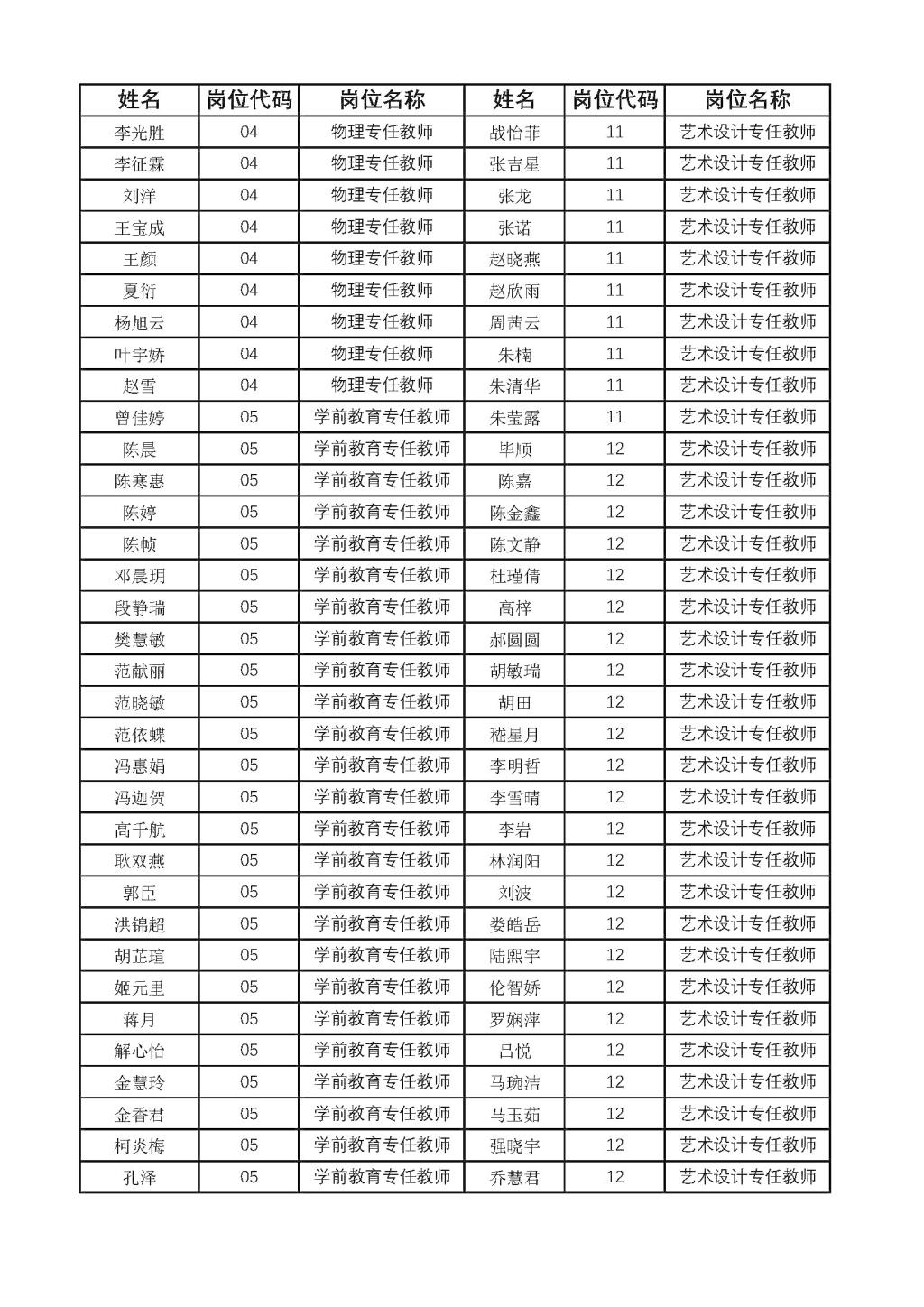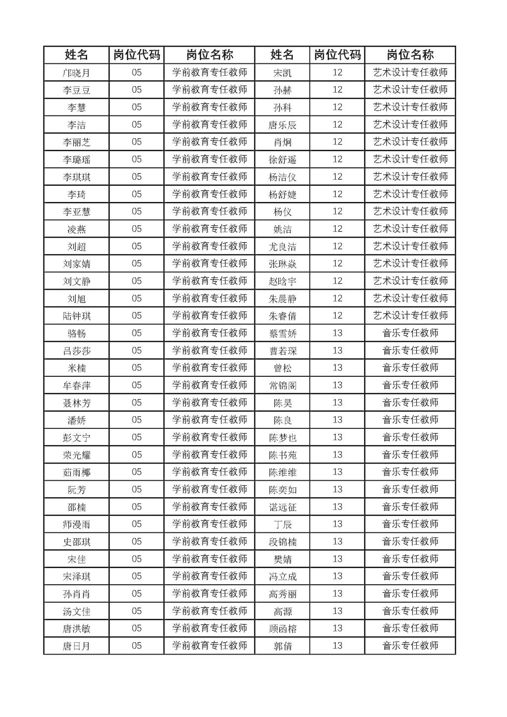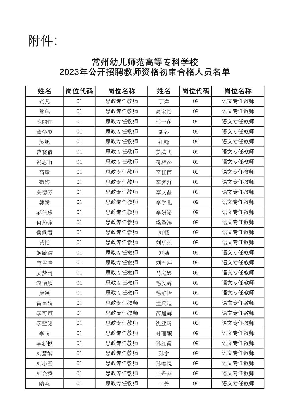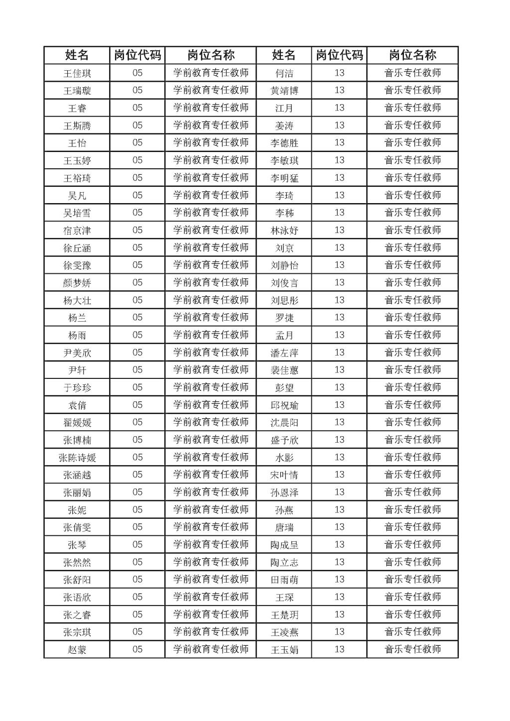 公开招聘教师资格初审合格人员名单的公示