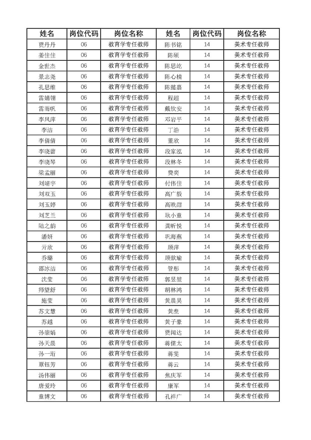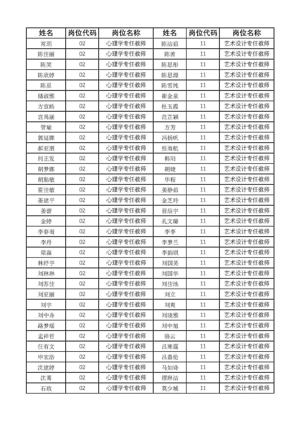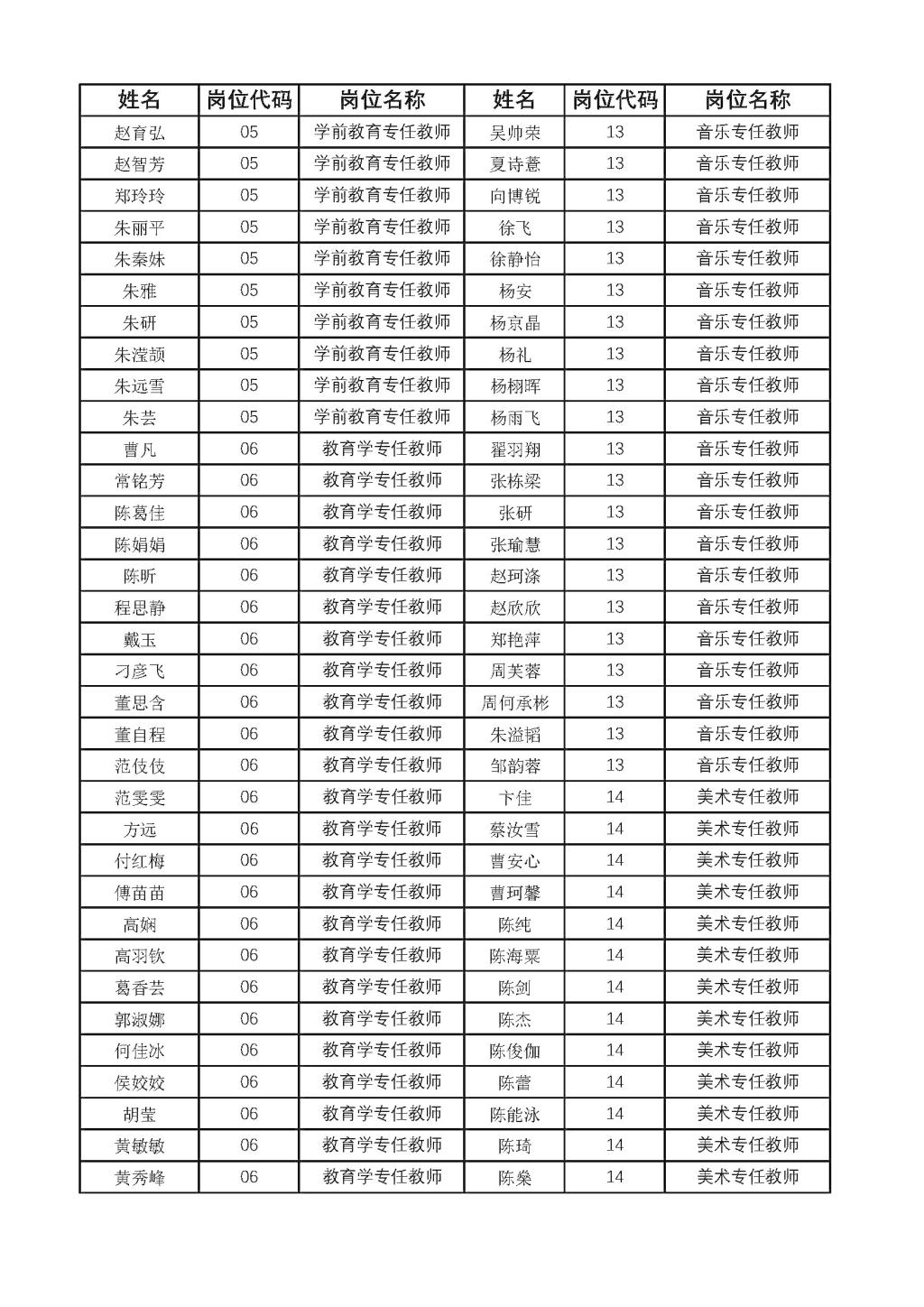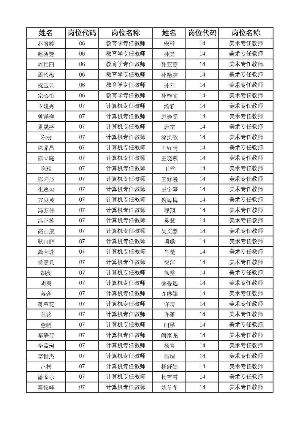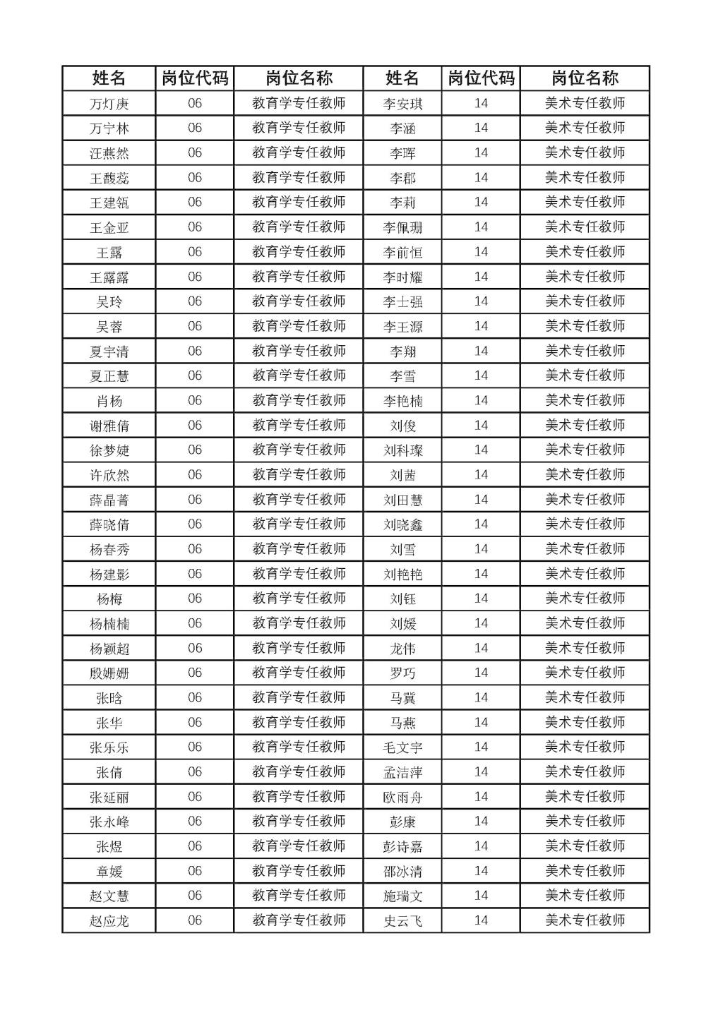 公开招聘教师资格初审合格人员名单的公示