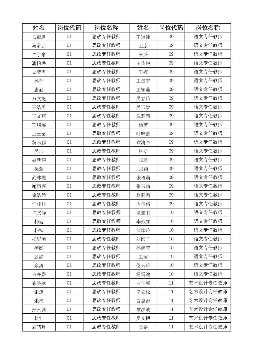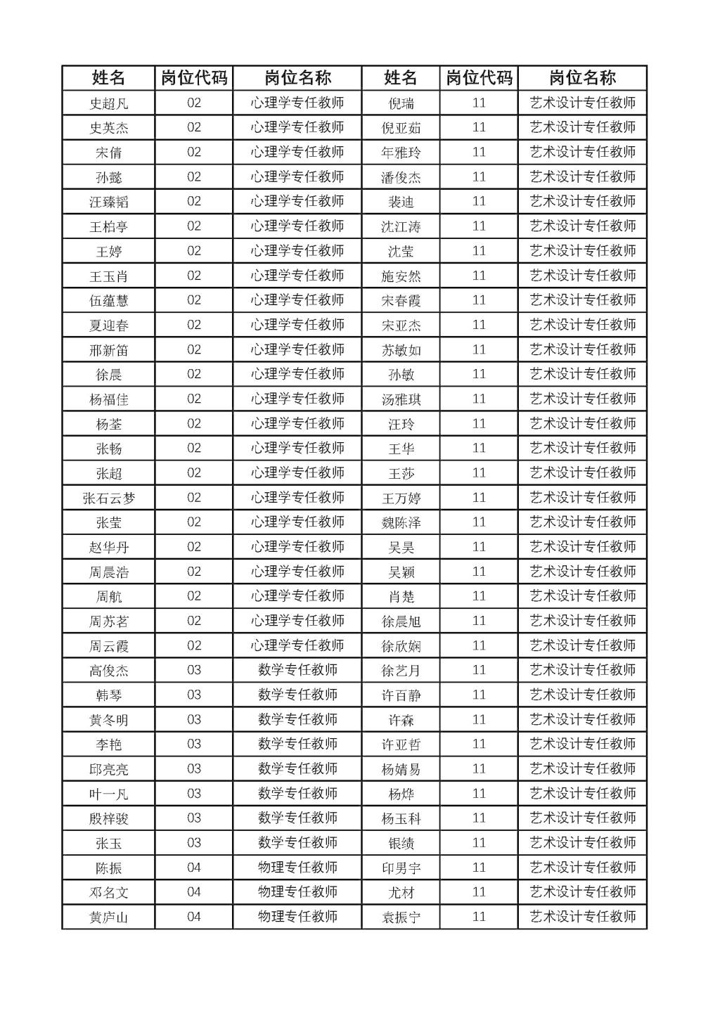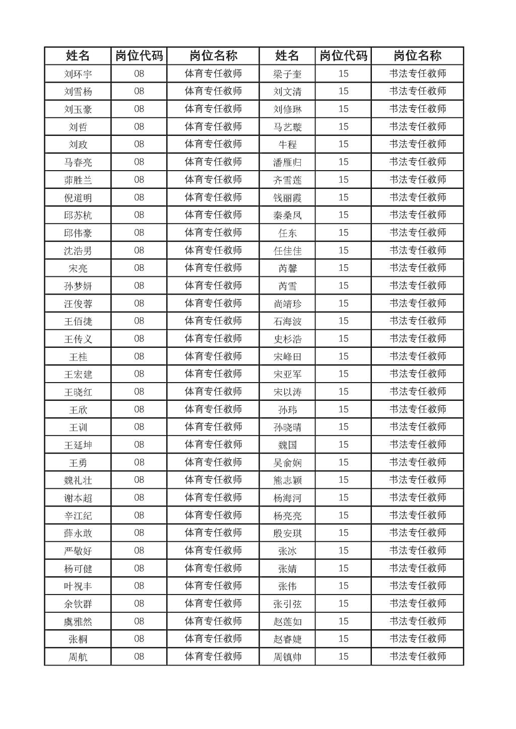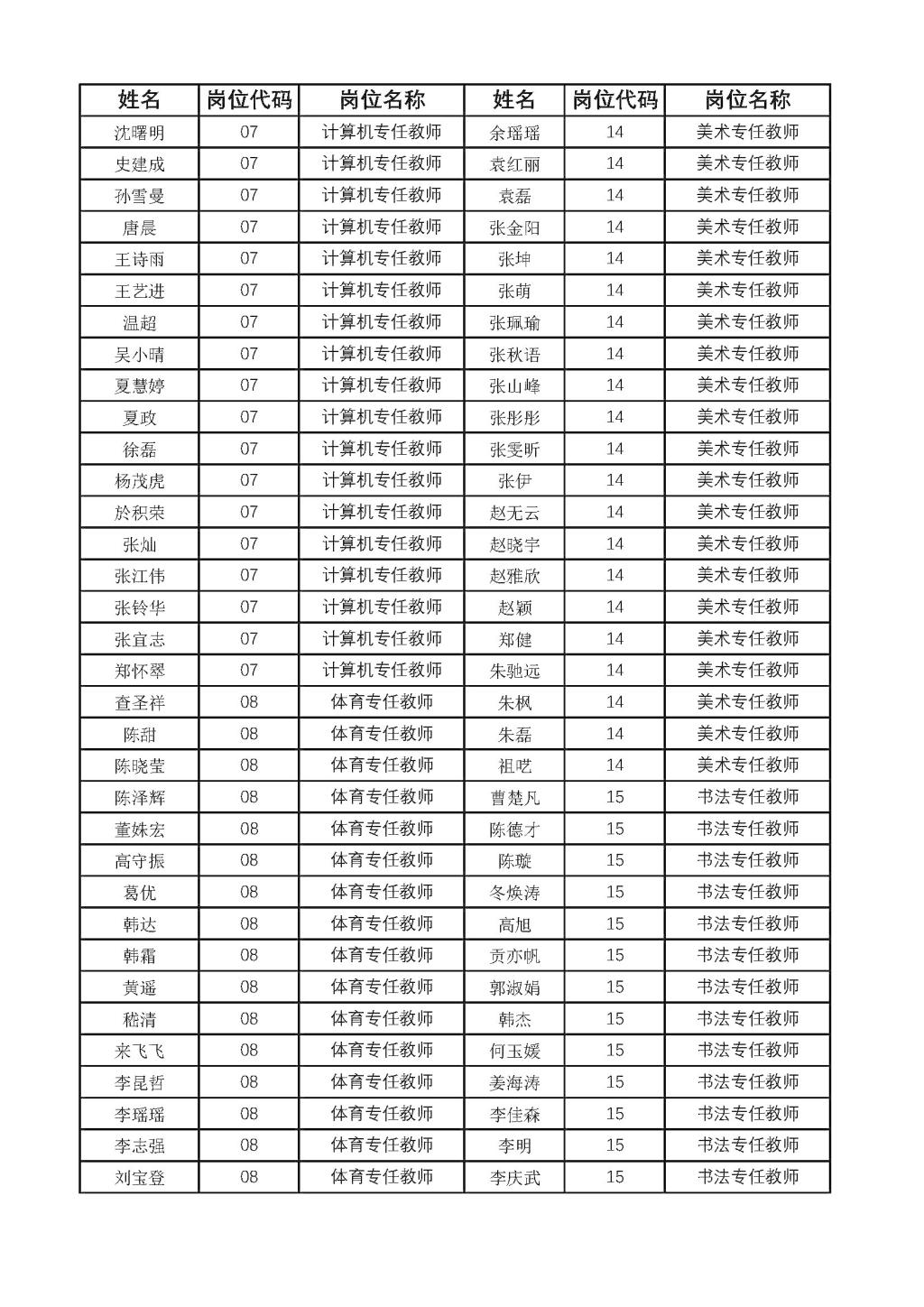公开招聘教师资格初审合格人员名单的公示