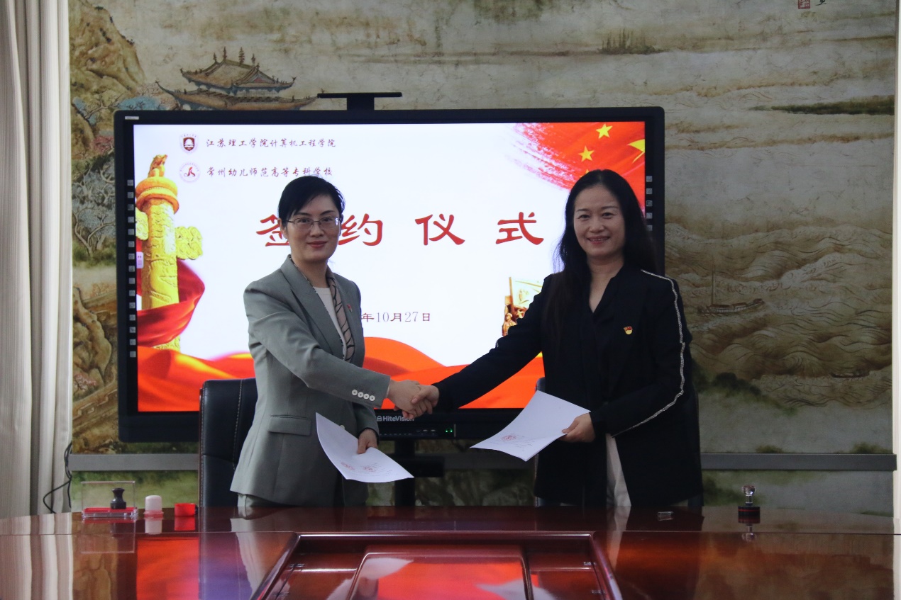 最后,江理工计算机工程学院党委与常幼专第一支部签订了党建结对共建协议书,双方确立为党建结对共建单位。