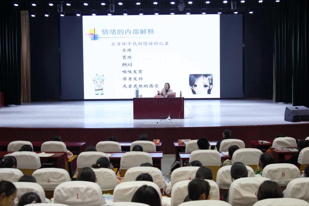徐教授从认知、适应、重塑这三方面展开交流,运用很多经典案例和智慧语言,引导学生正确地认识自我、管理情绪、积极发展。首先徐教授以疤痕实验为例,希望同学们能认可自己,发现自己的长处和短处,勇于接纳自己。接着讲述了青春期校园生活的重要性,期盼同学们适应环境,积极参与校园活动,融入常幼大集体。最后介绍了情绪ABC理论,建议同学们要学会管理负面情绪,以积极的心态面对生活,可以用运动和食物来派遣消极情绪。最后,徐教授真诚祝愿每一位学子成为善于管理情绪、宽容乐观、积极奋斗的愉悦幸福之人。