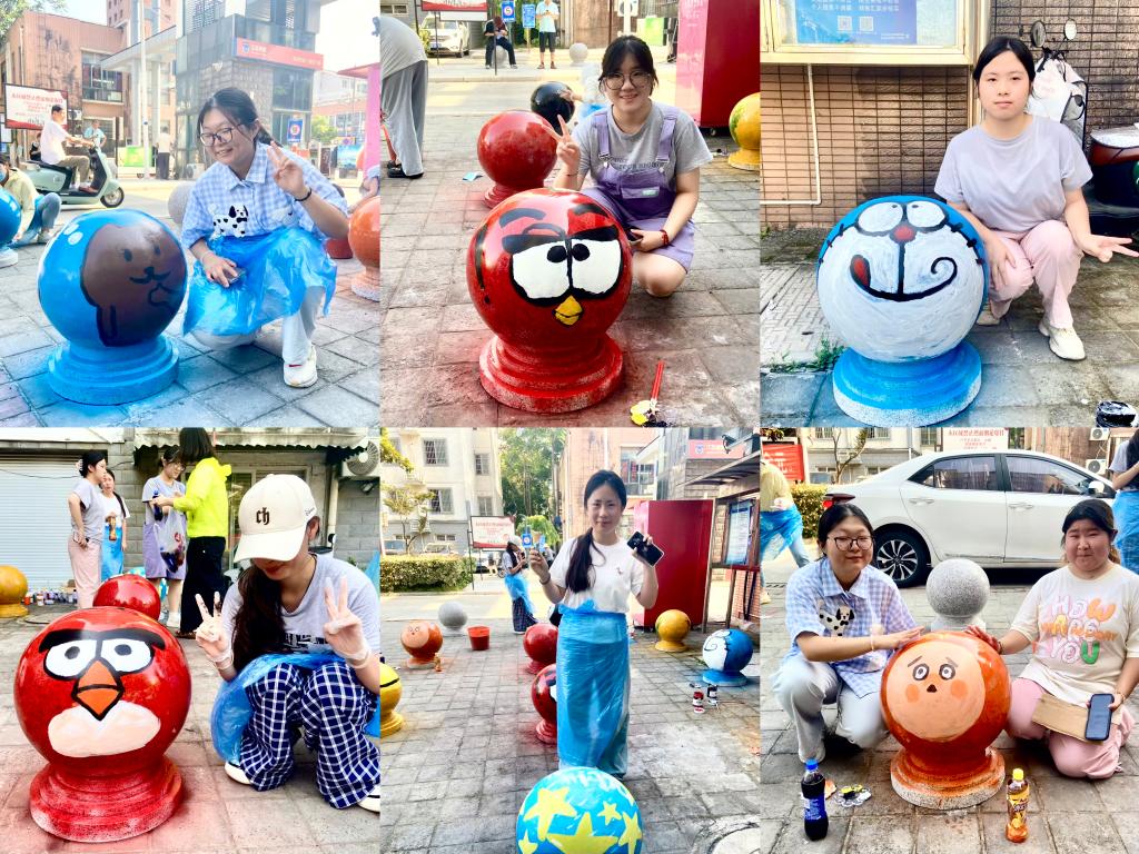 活动现场,志愿者们热情四射,相互协作,以石球为画布,执笔挥洒创意。笔尖流转间,童趣盎然的“愤怒的小鸟”跃然球上,明快色彩与夸张造型引人会心一笑;传递温情的“来自星星的孩子”主题画作,以深邃星空蓝和流星诉说包容关怀;醒目的“防诈提醒”巧妙地将可爱图形与警示标语结合,赋予文明宣传艺术感染力。经过两个小时的创作,原本单调的石球变身“文明宣传使者”,成为社区里一道亮丽的风景线。