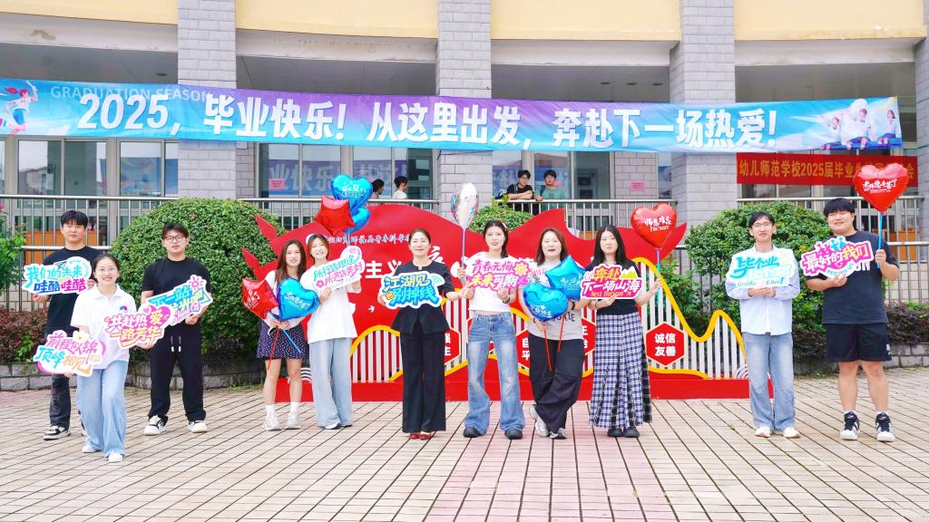 校党委书记、校长王中发表了饱含深情的毕业寄语。他动情回顾道:“作为首届三年制毕业生,同学们以开拓者之姿为母校谱写了华彩篇章——77名学前教育专业学子以仁爱之心深耕幼教沃土,38名艺术设计专业学子以创新之笔勾勒青春画卷。更令人自豪的是,45名学子通过专转本考试,成功考入常州大学、盐城师范学院等本科院校,实现了从专科生到本科生的华丽蜕变。”面对即将踏上新征程的毕业生,王校长勉励大家以奋斗为笔,以担当为目,将个人理想融入时代洪流,在各自领域绽放璀璨光芒。