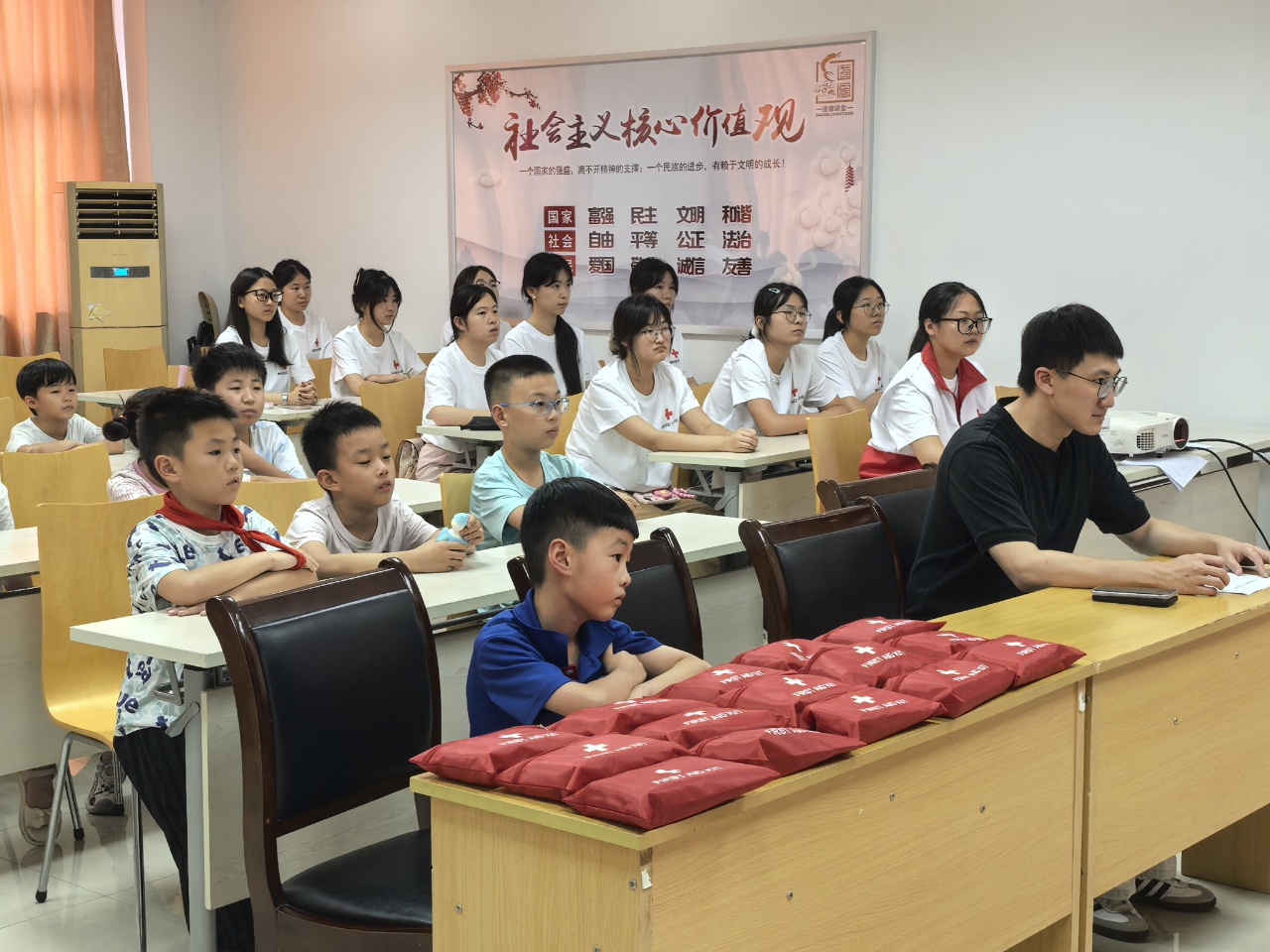 启动仪式结束后,志愿者们迅速投入实践,在南苑社区开启了首日授课。本项目特别关注新业态新就业群体子女的需求,志愿者们发挥师范专业所长,用生动易懂的语言和图文并茂的形式,为孩子们进行了“三献”知识科普,传递珍爱生命、无私奉献的理念。随后,趣味十足的手工制作课堂将知识融入实践,孩子们在志愿者们的耐心指导下,踊跃参与,动手创作,寓学于趣,课堂氛围热烈融洽。