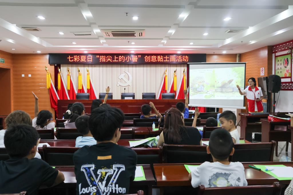 为厚植儿童的传统文化认同感,志愿服务队精心开展了非遗剪纸和小暑黏土创作活动。孩子们在志愿者引领下了解传统文化故事,体验中国剪纸与节气艺术的独特魅力,在亲手操作中感受中华优秀传统文化,用创意剪纸和手工黏土表达对生活的热爱与美好期望。