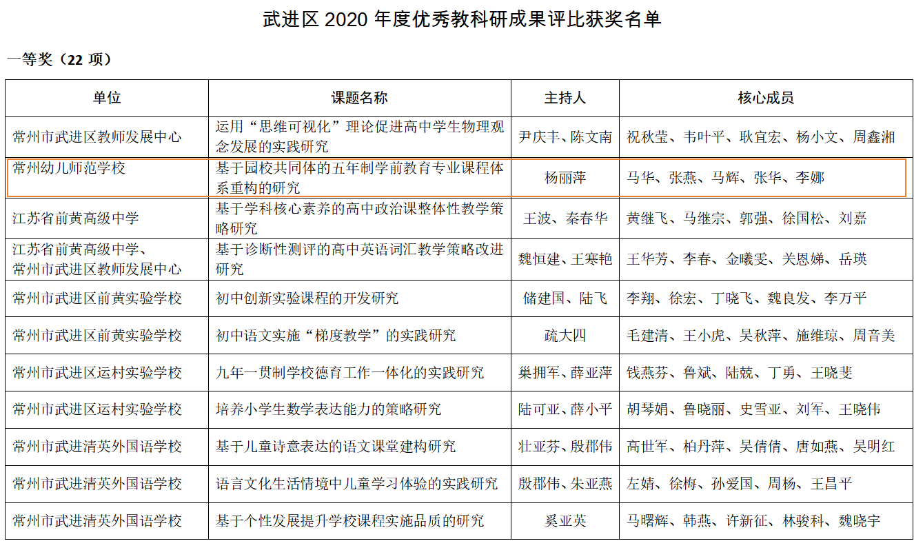 喜报:多盈平台登录手机多盈在线客户端课题在2020年度优秀教科研成果评选活动中获一等奖 2021年05月11日 15:23 点击:[] 在2020年度武进区优秀教科研成果评选活动中,由杨丽萍副校长主持的省规划重点课题《基于园校共同体的五年制学前教育专业课程体系重构的研究》获得优秀教科研成果一等奖。在此,向获奖的课题组成员表示祝贺! 上一条:多盈平台登录手机多盈在线客户端两则省职教学会课题顺利结题 下一条:常州市幼儿教师职业心理健康服务与研究项目开展学术研讨会 【关闭】