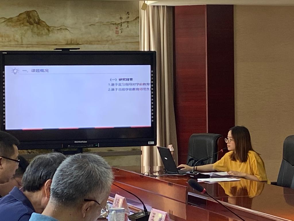 省教研课题主持人马辉、马华主持的课题为《基于儿童立场的五年制幼师生课程能力培养策略研究》,市青年专项课题主持人刘桂云主持的课题为《五年制学前教育师范生顶岗实习指导现状、问题及对策研究》。两个课题分别由省教研课题主持人之一马辉、市青年专项课题组成员吴芳代表课题组从课题研究的背景与目标、课题研究进展、阶段性研究成果、研究反思及计划等方面进行中期汇报。专家们听取了汇报,检查了成果材料,就研究背景、目标、内容、方法及阶段性成果等方面提出了意见和看法,并对两项课题接下来的研究方法、内容及如何完善研究报告提出了宝贵的建议。