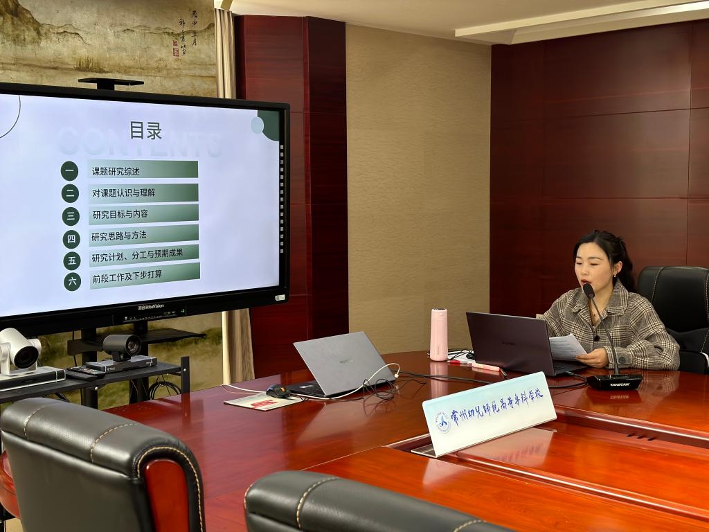 赵亚男老师从课题研究综述、对课题的认识与理解、研究目标与内容、研究思路与方法、研究计划、分工与预期成果、前段工作及下步打算等六个方面,对课题《综合音乐感理念下学前教育专业音乐课程综合的实践研究》进行了开题论证汇报。