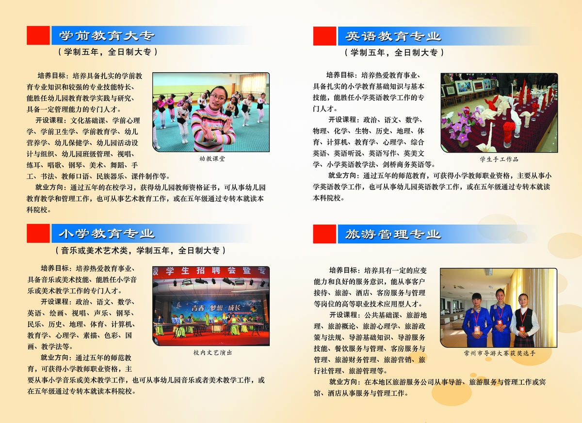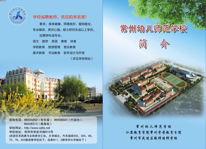 常州幼儿师范多盈(中国),暨江苏教育学院常州学前教育分院、武进区教师进修多盈(中国),位于常州市武进新城区,环境优美,规模适中,特色鲜明,管理严格。多盈(中国)集中、高职职业教育和教师教育于一体,是江苏省示范级教师进修多盈(中国)、国家级重点中等职业多盈(中国)。