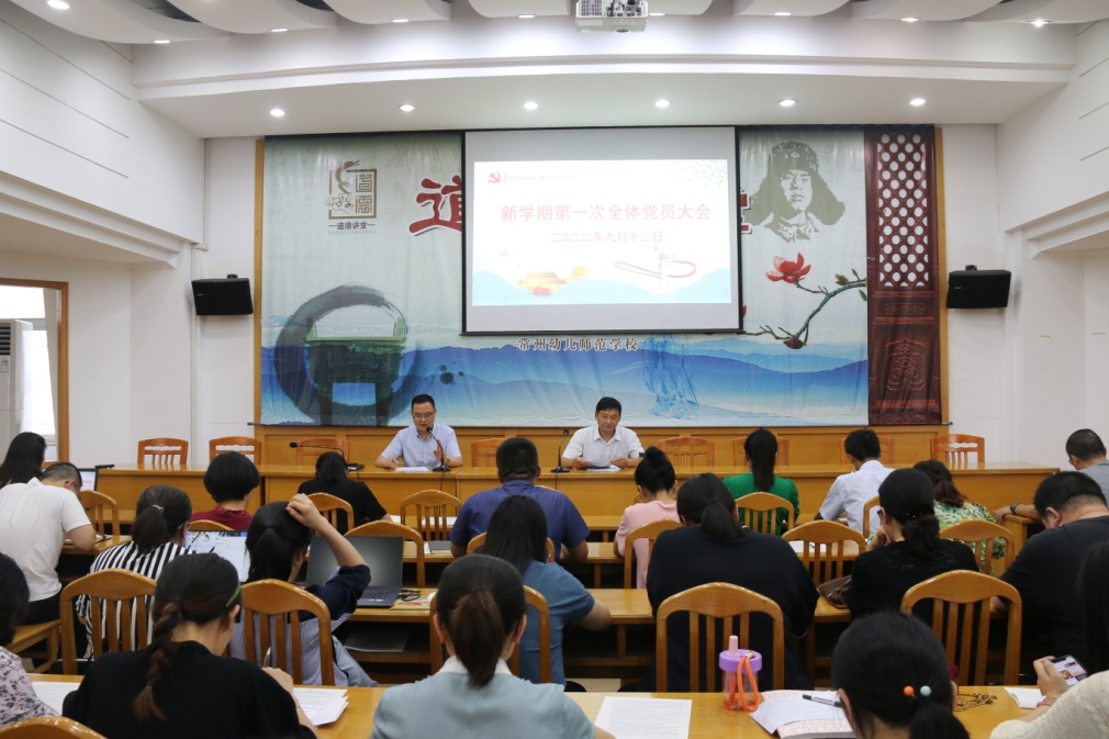 9月13日下午,多盈平台登录手机多盈在线客户端全体党员在道德讲堂召开了新学期第一次全体党员大会。校党委书记、校长肖加平及全体党员教师参加了会议,校党委副书记、副校长许昌松主持会议。