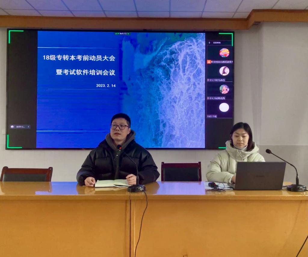 2月14日下午,教务处在5503教室举行了18级专转本考前动员大会,教务处殷荣荣副主任主持会议。