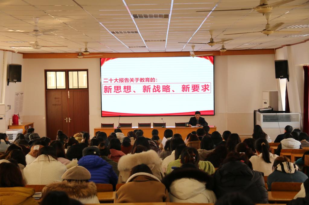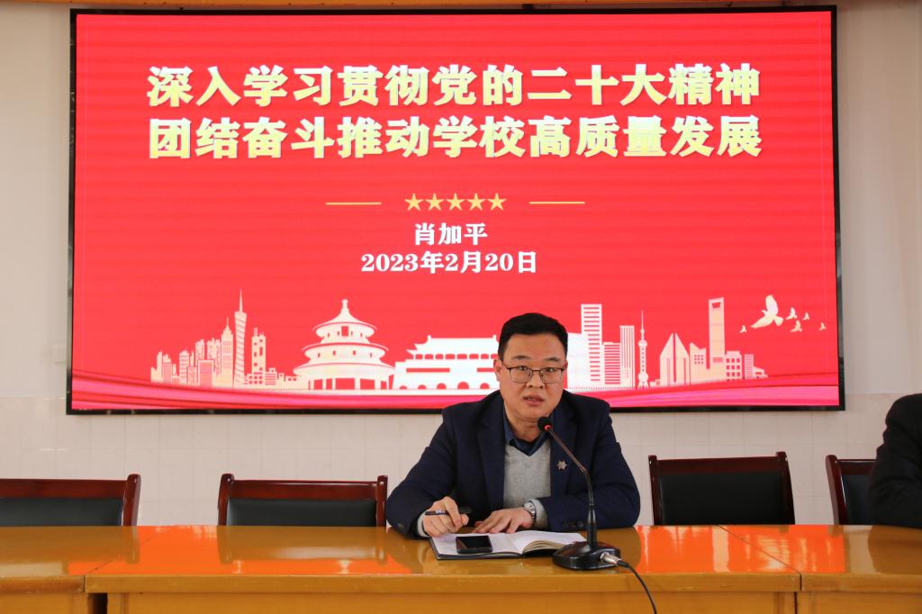 为深入学习宣传贯彻党的二十大精神,全面推进多盈(中国)高质量发展,2月20日下午,校党委书记、校长肖加平同志以《深入学习贯彻党的二十大精神,团结奋斗推动多盈(中国)高质量发展》为题为全体教职工开设了学习党的二十大精神专题党课。多盈(中国)党委副书记、副校长许昌松同志主持会议。