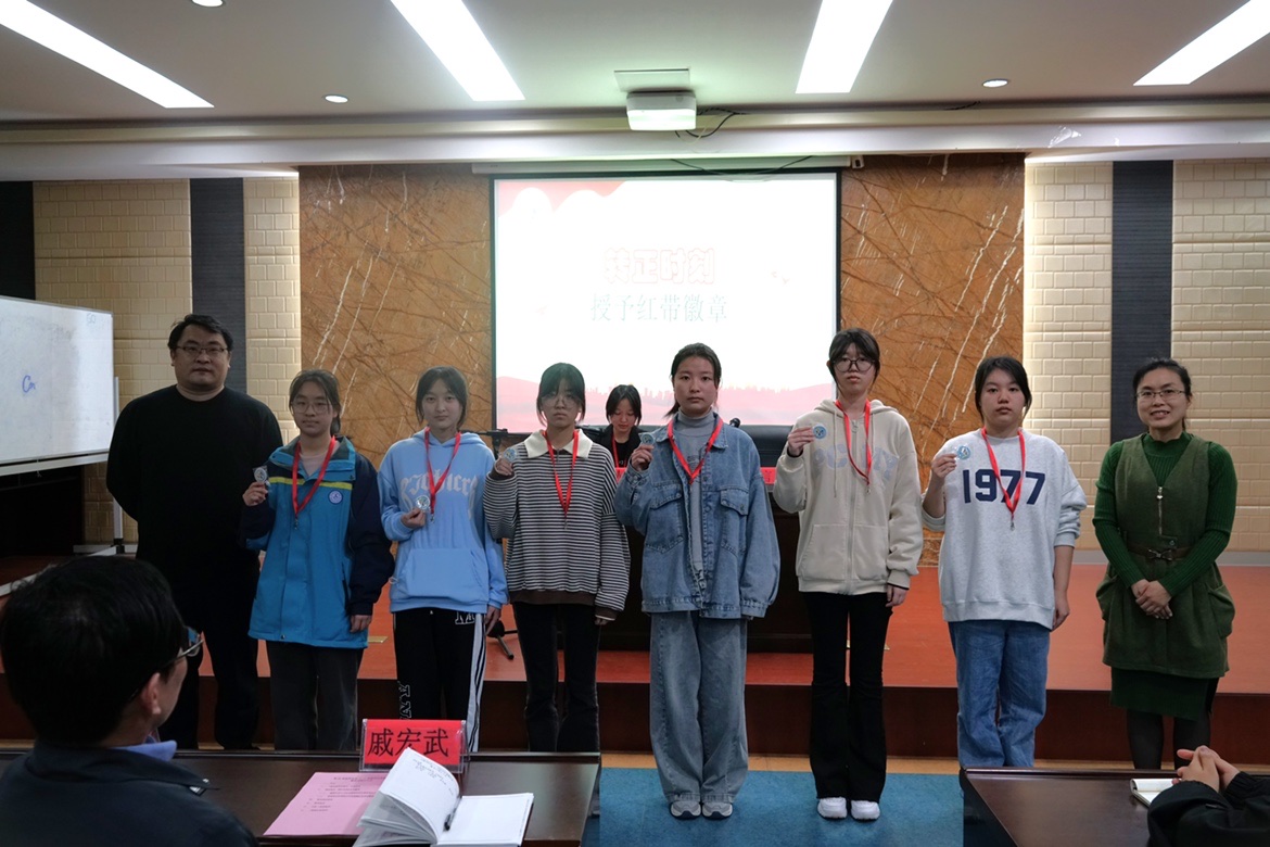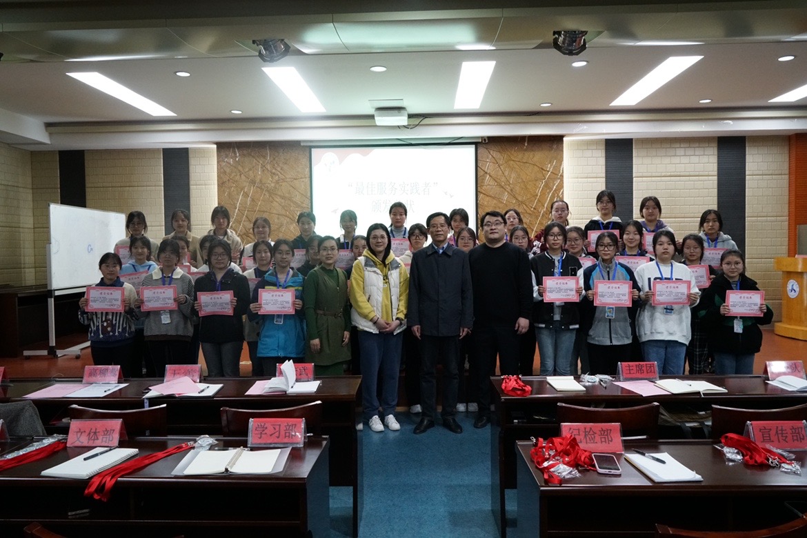 首先,实习生代表学前2209徐誉郡同学发言,她回顾了在宣传部的工作体验,同时对未来的工作表达了憧憬和期望。其后,学生会副主席学大197班王柯宣布了“最佳服务实践者”获奖和转正名单,戚校长和王主任共同为获奖同学颁发了“最佳服务实践者”奖状,高老师、吴老师分别为转正同学代表佩戴工作红丝带,分发会员徽章。