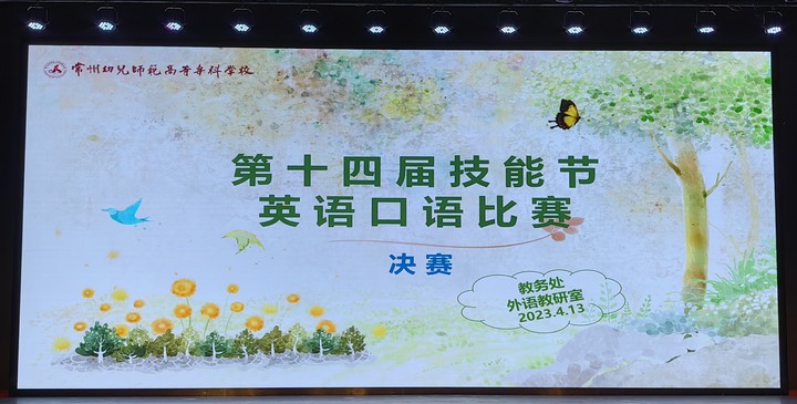 4月13日下午3点,第十四届技能节英语口语比赛决赛在仁艺楼演播厅举行。此次决赛的形式为主题演讲,用英语讲述中国故事——张桂梅。本次比赛由外语教研室承办,徐磊、胡玲、宣艳、戎佩珏、陶佳敏和冯鹃老师担任评委。学前教育专业21级全体学生到场观摩。