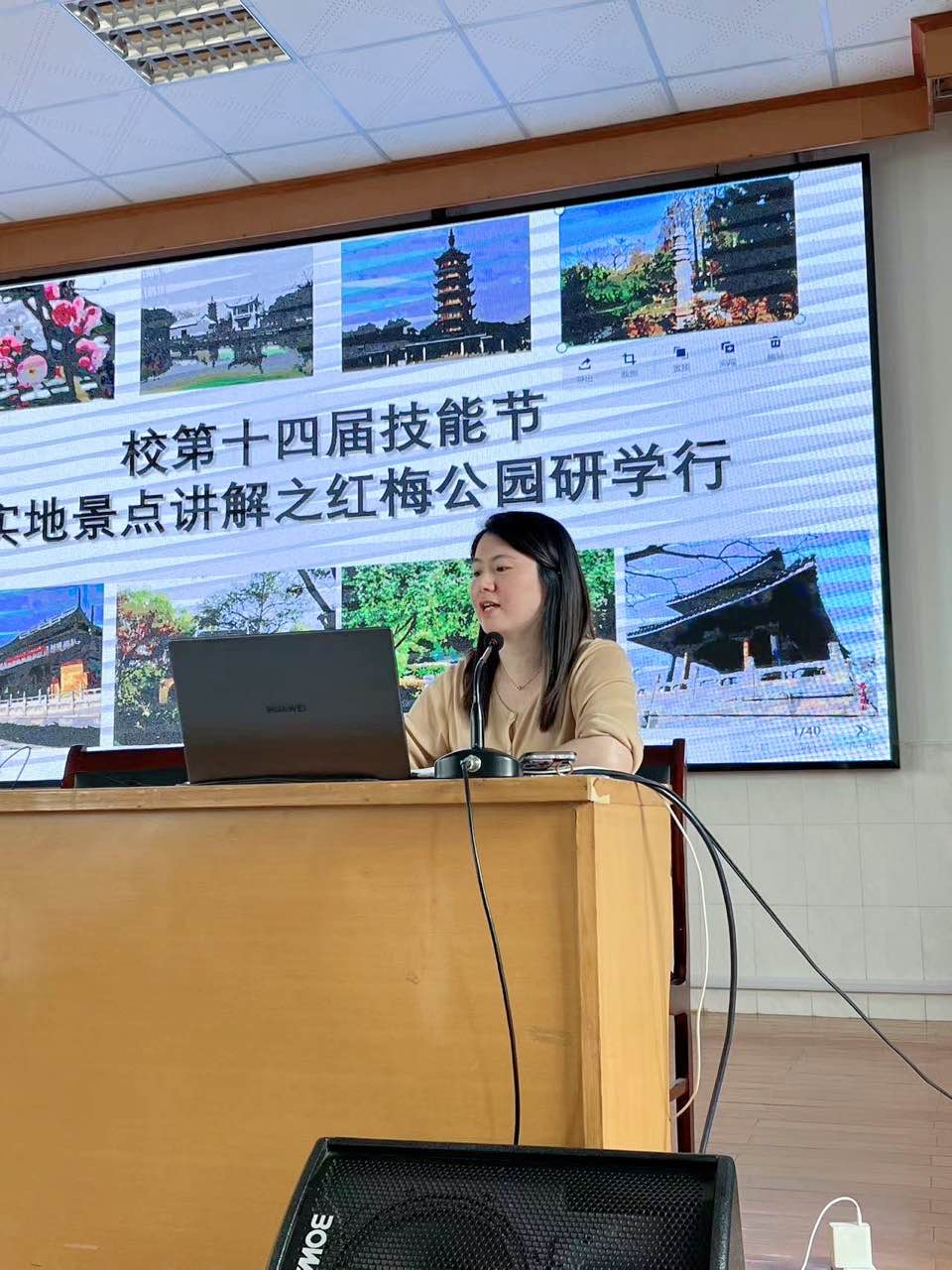 本次研学旅行的目的地是位于常州市中心的红梅公园。前期陈敏玉老师充分调动同学们的积极性并指导他们进行导游词创作与讲解。五一假期同学们去到红梅公园内,打卡景点,拍摄美照,更重要的是按抽签内容,完成实地景点讲解任务,全程拍摄记录并制作成完整视频作品。两个班级20个小组按期上交了20个优秀的作品。