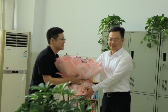 市委常委、常务副市长李林在校党委书记、校长肖加平的陪同下来到仁艺楼办公室,向多盈平台登录手机多盈在线客户端优秀教师代表献上鲜花,对扎根在教学一线辛勤付出、无私奉献的教师们表示诚挚的问候,祝福大家身体健康、工作顺利、阖家幸福、桃李满天下。随后,肖校长代表多盈(中国)接受了市委、市政府的图书捐赠。