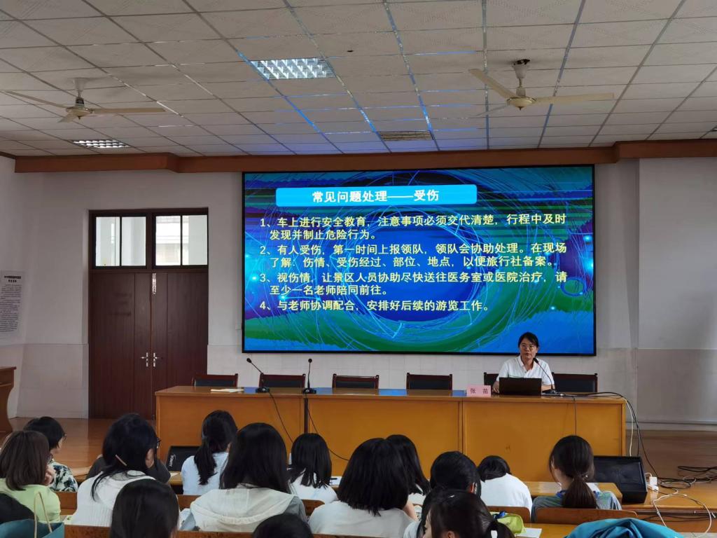 9月12日下午,现代服务专业部旅管19、20、21级学生集中在5503教室,由常州广电大陆国际旅行社师资中心的张苗经理对即将开启的秋季带团工作做了详尽的岗前培训。