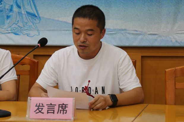 随后,王峰老师和史雨露同学分别代表教练员和运动员作了表态性发言,史雨露同学还带领全体运动员庄严宣誓。体育教研室郭颖颖主任,对本学期各运动队的训练计划作了简要说明,明确了训练的时间、计划、态度等各方面要求。