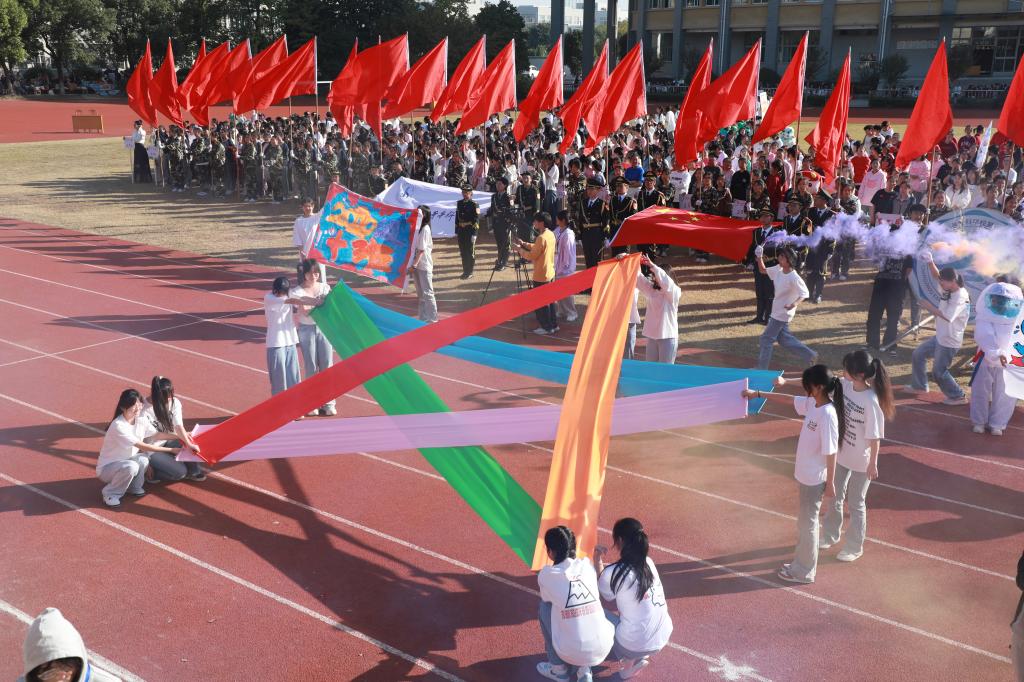 本次运动会以“与运动相约,与健康同行”为主题,比赛项目丰富多彩,包括集体项目、单人项目、教工项目十多项,共计51个班级,1700多人次参赛。最终共产生215枚金牌,班级团体总分最高为134分。评出团体总分高年组前12名,低年级组前16名,优秀组织奖20名。运动员们挥洒汗水,奋力拼搏,注重团队合作和精神风貌,互相扶持、鼓励,为团队争取更好的成绩。这种团队精神不仅让我们感到无比的骄傲和自豪,也让我们深刻体会到了运动会的真正意义,展现了青春的力量和勇气。