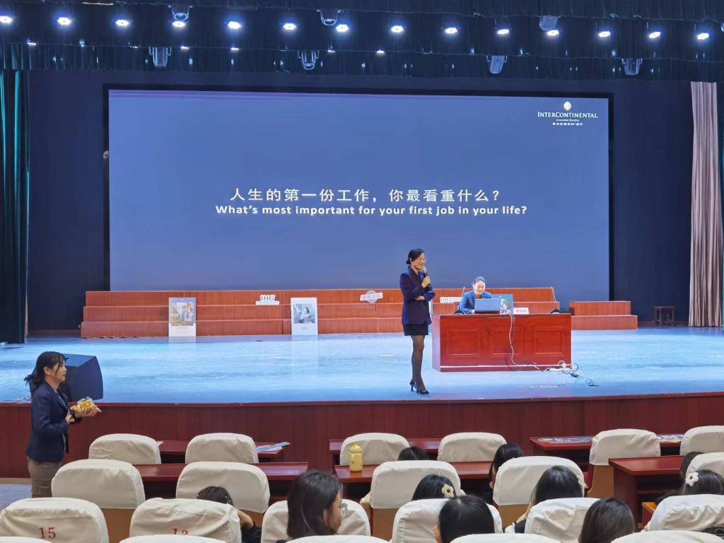11月8日,现代服务专业部所有学生集中在仁艺楼演播厅,由常州富都洲际酒店的人力资源总监潘静静为同学们做了职业生涯发展专题讲座。