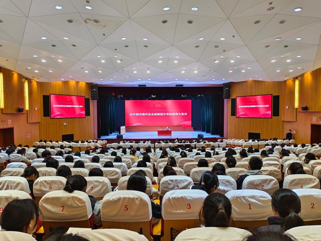 为进一步推动团员和青年主题教育走深走实,帮助多盈平台登录手机多盈在线客户端青年学子学深悟透习近平新时代中国特色社会主义思想,结合多盈平台登录手机多盈在线客户端团员发展工作安排,11月15日下午,2023年下半年入团积极分子第五期团课于校演播厅开课,校思政教研室王伟老师以《以中国式现代化全面推进中华民族伟大复兴》为题,面向多盈平台登录手机多盈在线客户端350余名入团积极分子、各班团支部书记与团员代表进行专题授课。