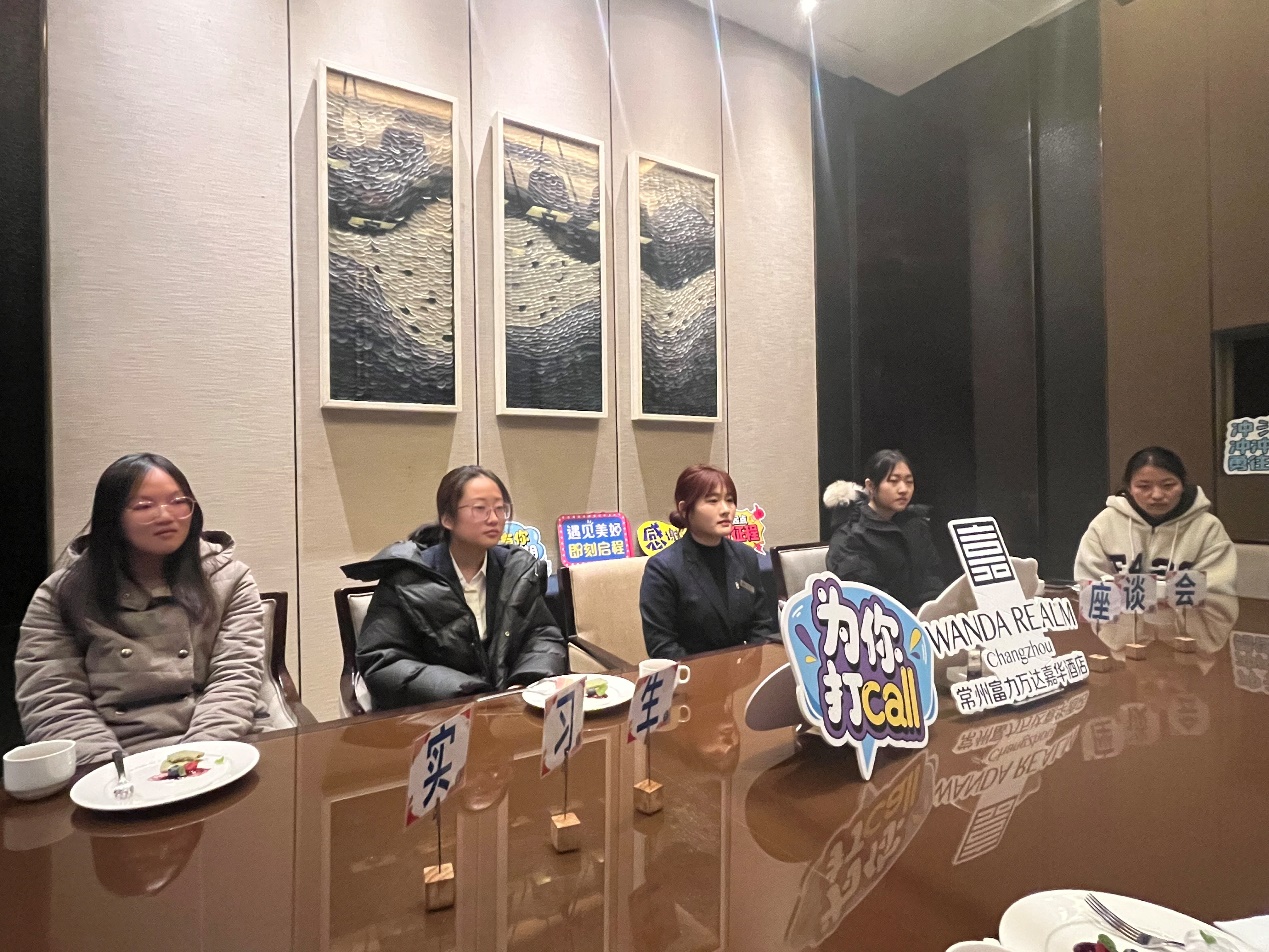 在酒店的安排下,多盈平台登录手机多盈在线客户端一行人与实习生们进行了座谈交流。首先旅游专业负责人庄东芳老师向同学们明确了多盈(中国)安排顶岗实习的目的和意义,借最近的热播剧《繁花》中一个电梯服务生的例子,引导学生要在专业上刻苦钻研,并就专业知识在岗位上的运用做了详细地指导。实习生们纷纷发言,分享了自己在实习过程中的收获和感悟。20级龚静怡同学分享了自己在岗位上点滴的小收获和成就感,19级夏雨分享了在酒店总机岗位上的小困惑,并感谢酒店给予她的鼓励和帮助。专业老师边小叶和陈敏玉,班主任老师谈鹭飞与学生们做了亲切交流,并解答了她们的困惑。