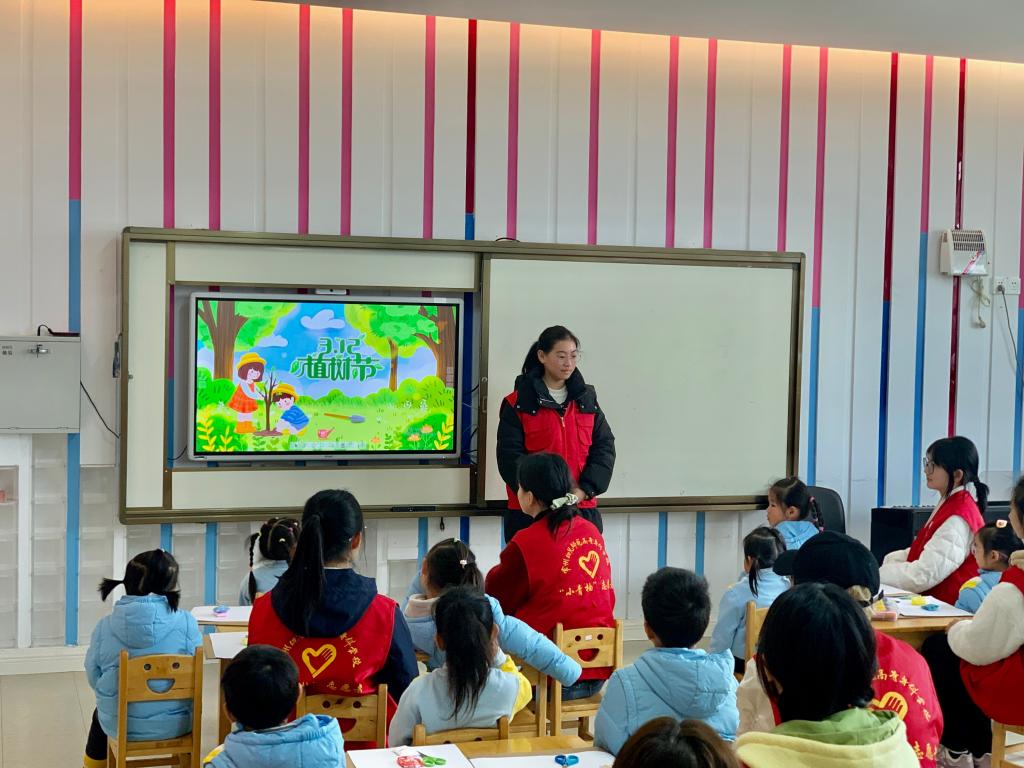 志愿者代表谭垚、杨鑫彤分别面向小朋友们开展植树节科普、生态保护宣讲,有趣的内容和亲切的交流让小朋友们了解了树木的知识、植树节的来历及意义,提高了保护树木花草的责任感,在他们的心中播撒了一颗环保与爱的“种子”,激发了他们爱绿、护绿的情感。