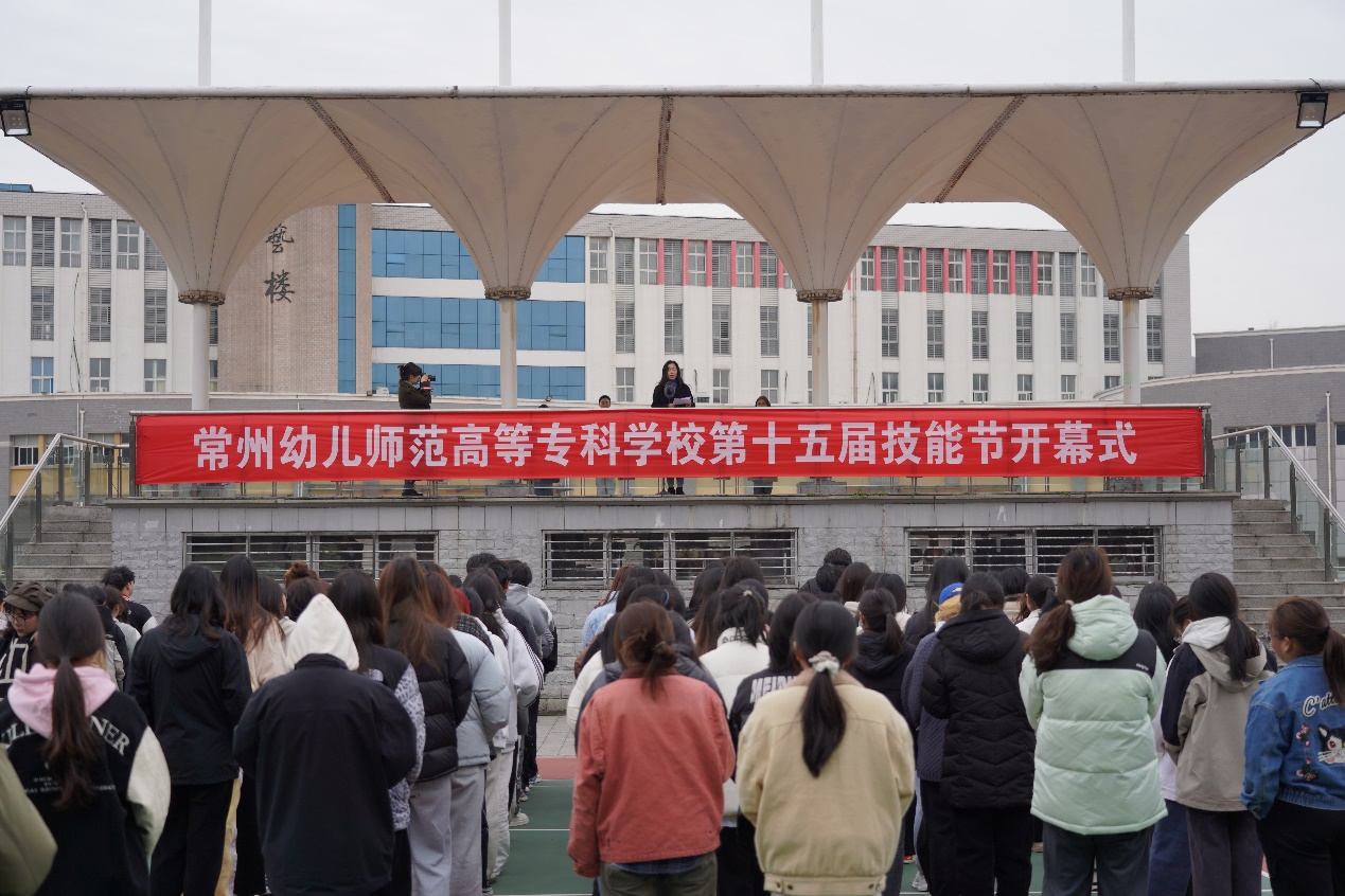 绿柳垂丝拂面来,花开满园映日开。3月18日上午,全校师生齐聚篮球场,隆重地举行了常幼专第十五届技能节开幕式。开幕式由教务处顾静处长主持,杨丽萍副校长致开幕词,教师代表葛娴、学生代表史雨露分别讲话。