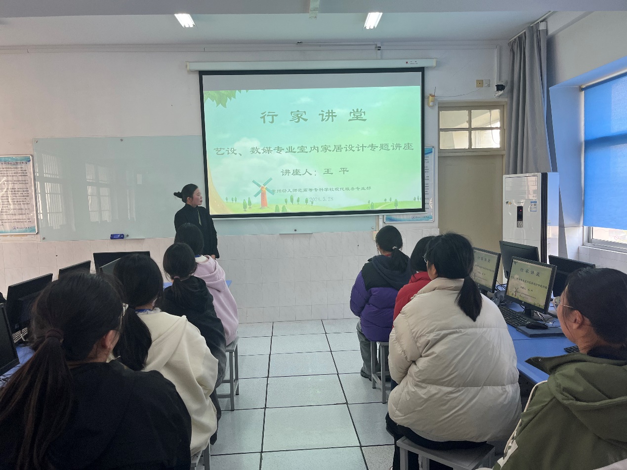 3月28日下午,多盈平台登录手机多盈在线客户端现代服务专业部邀请江苏北亚装饰工程有限公司的设计师总监王平,为现代服务专业部艺设23级和数媒20级家装方向的同学们开展室内家居设计的专题讲座。