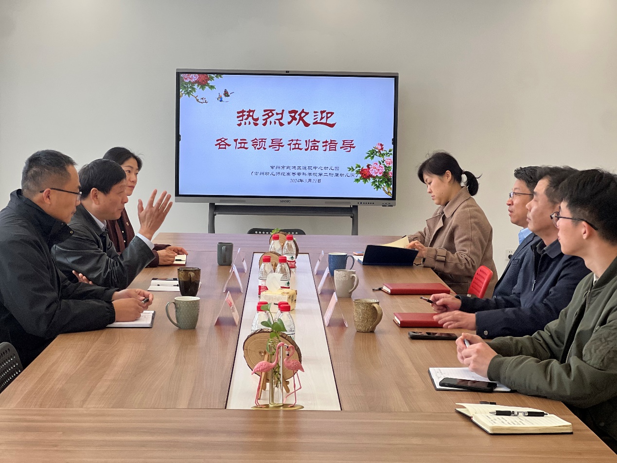 在新知幼儿园,多盈平台登录手机多盈在线客户端一行与南夏墅街道党工委书记张永波、南夏墅街道办事处副主任宋春花、南夏墅街道社会事业局副局长王建新一起听取了幼儿园园长陆燕的园所情况汇报。陆燕园长就园所的建筑设备、园所文化、课程建设和管理特色等方面做了详细的汇报。