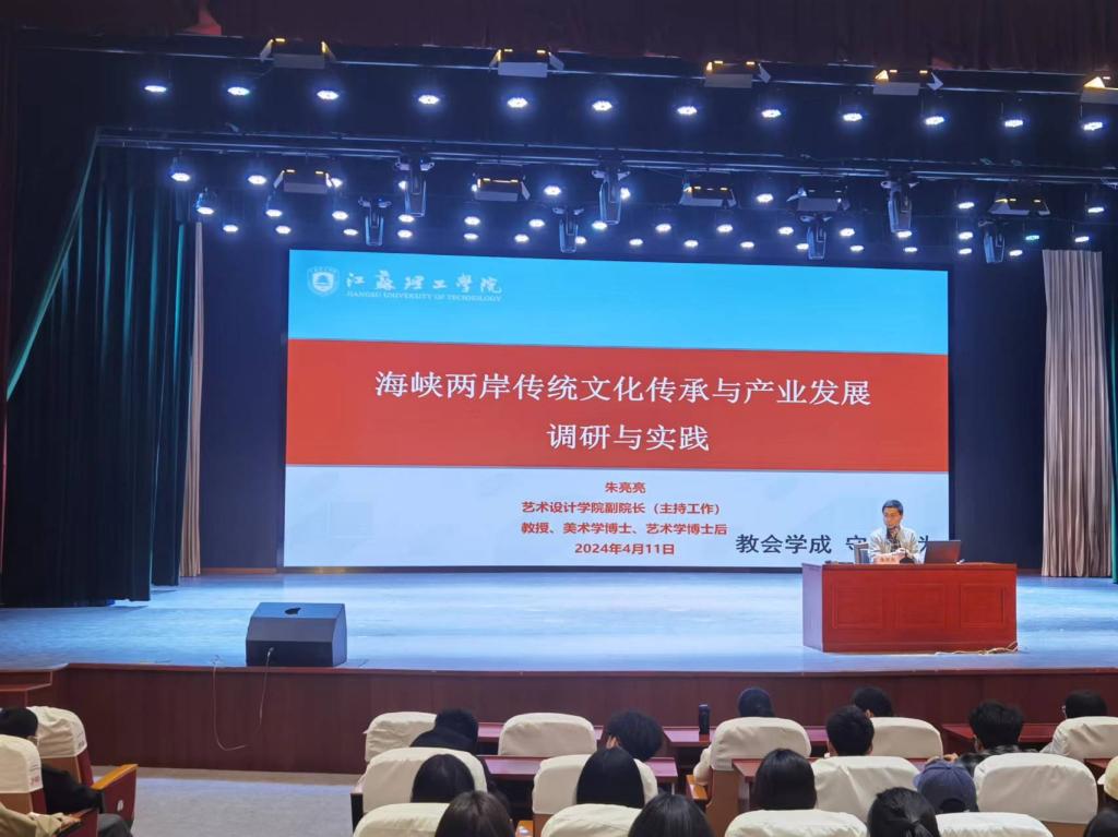 4月11日下午,现代服务专业部在仁艺楼演播厅举行《海峡两岸传统文化传承与产业发展调研实践》专题讲座,江苏理工学院艺术设计学院副院长朱亮亮教授受邀主讲,现代服务专业部全体同学及学前22、23级三年制所有同学参加。