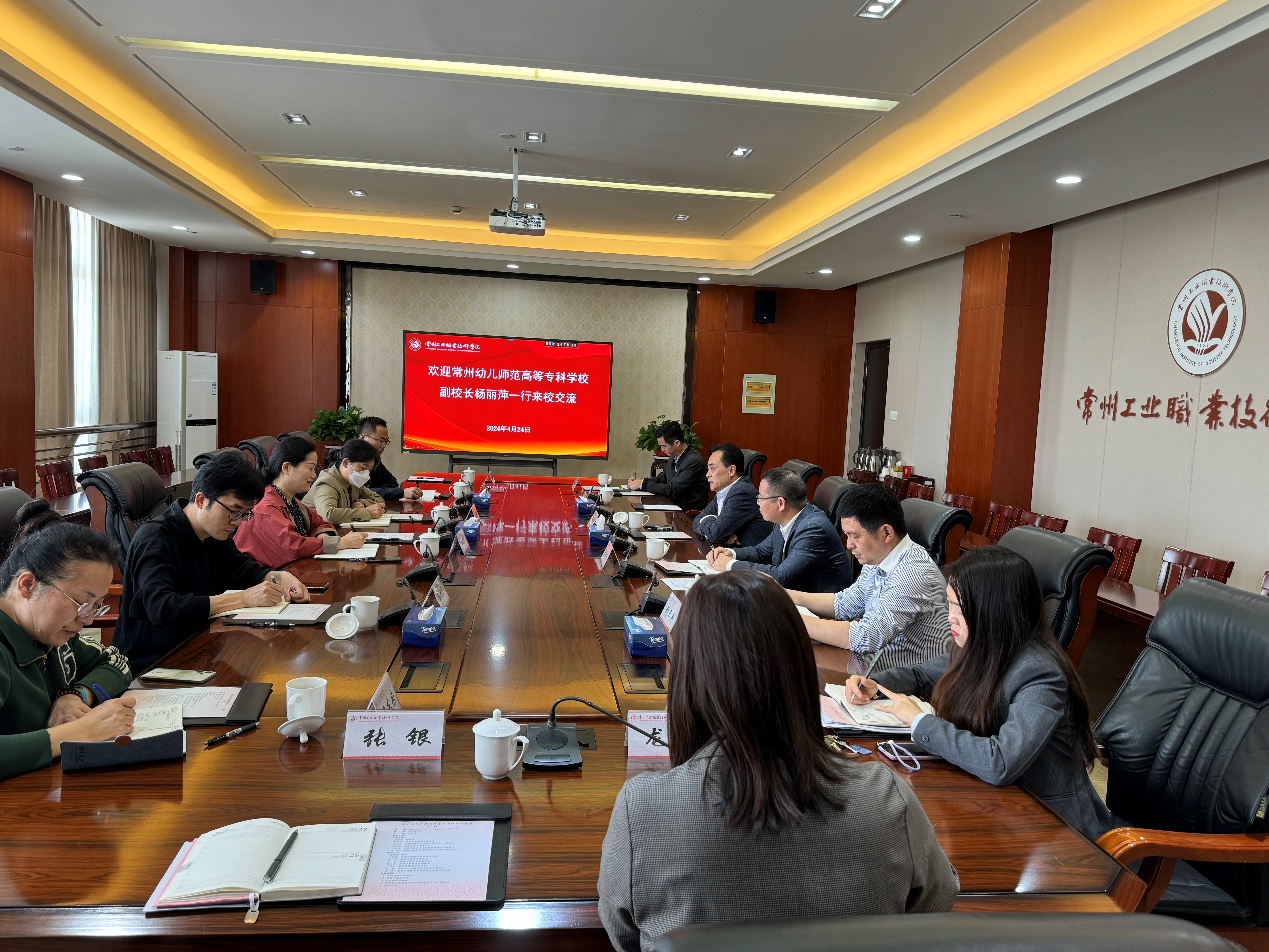 常州工业职业技术学院校长杨劲松致欢迎辞,杨丽萍副校长发表了讲话,双方围绕党建工作、专业设置与建设、师资队伍建设、人才培养模式等展开了交流。旅游与康养学院党总支书记王迎春及其领导班子成员带领杨校一行参观了母婴产业学院,双方就产教融合、校企合作、实习就业等问题进行了深入的交流探讨。