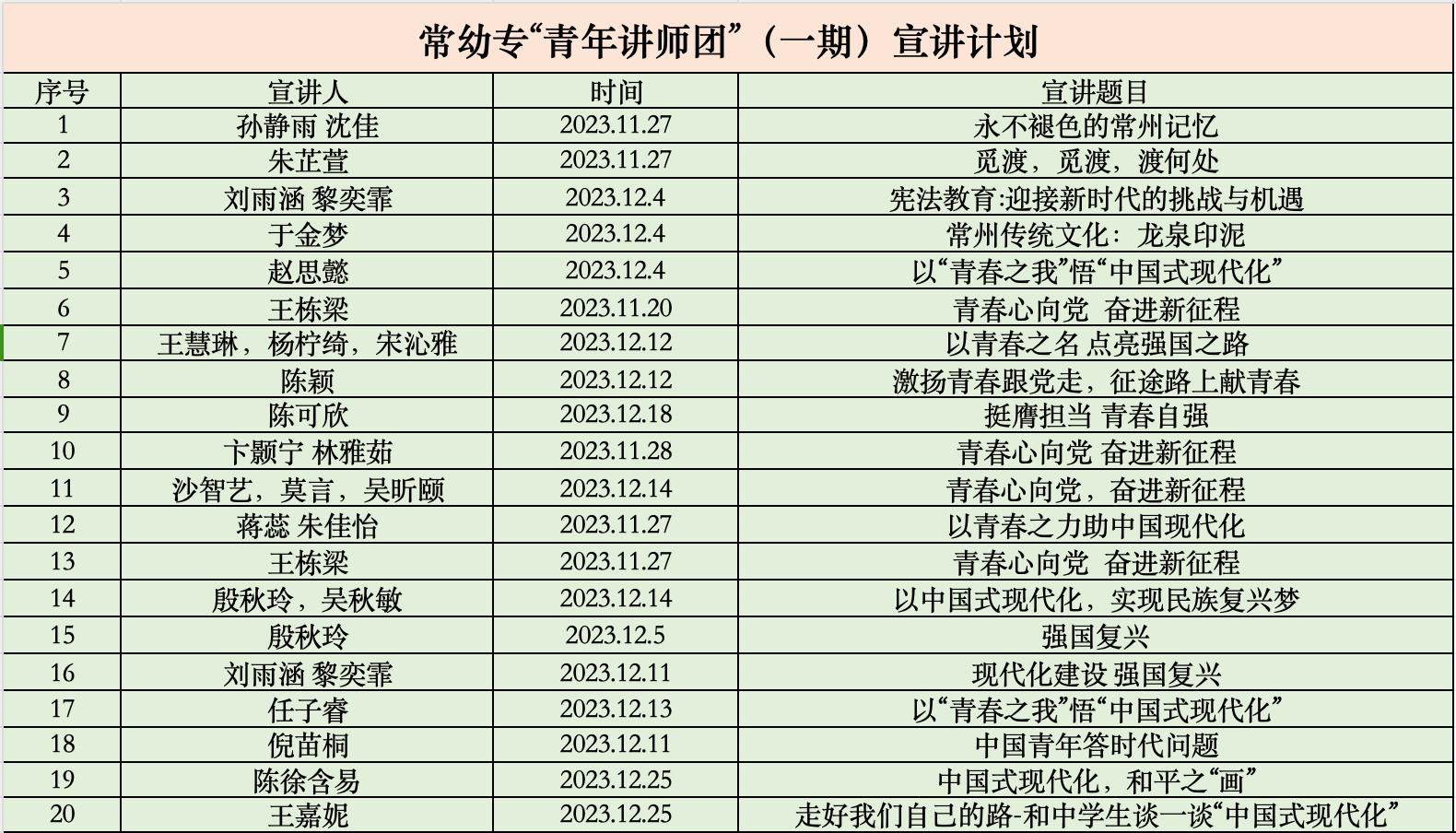 青年理论宣讲是传播党的创新理论、做好青年理论引领工作、创新式打造思想政治教育阵地的重要突破口。“青年讲师团”的培育与实践旨在引领多盈平台登录手机多盈在线客户端青年学子用创新手段和“00后”的话语体系,以青年人的视角,用大家听得懂、学得会的语言将党的创新理论讲给更多的人听。2023年11月-12月,常幼专青年讲师团(一期)成立,一期成员围绕“青春心向党 奋进新征程”的主题,以个人或者“小分队”形式走进班级团支部、乡镇街道、附属幼儿园团支部,开展小规模、互动式基层宣讲,每场覆盖30-50人,共计开展二十余场,取得一定的成效。