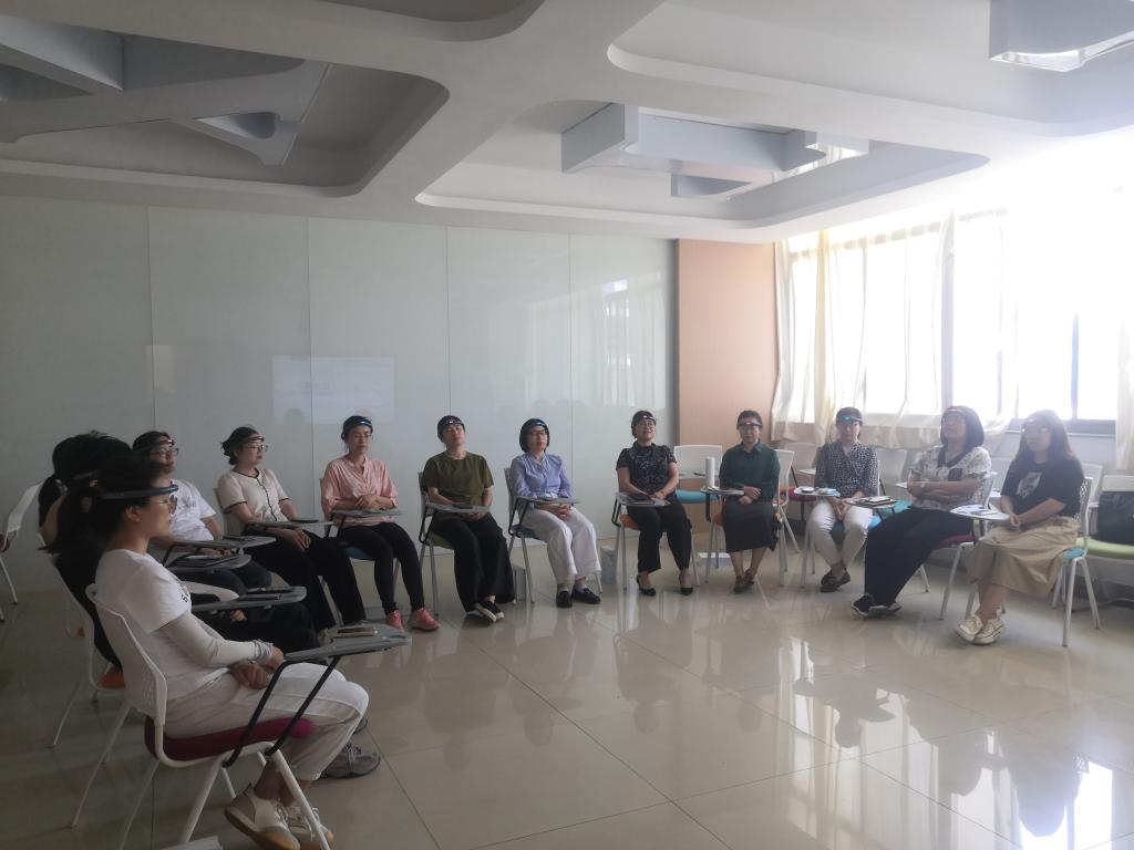 常州信息职业技术学院心理健康与咨询中心葛颖老师带领大家利用正念头环和仰憩APP进行呼吸正念体验,并进行了脑波测量;徐畅教授向大家讲解了正念的概念、来源、好处以及应用要点,并亲自带领大家进行了正念吃饼干活动。江苏教育电视台对本次活动进行了摄影。