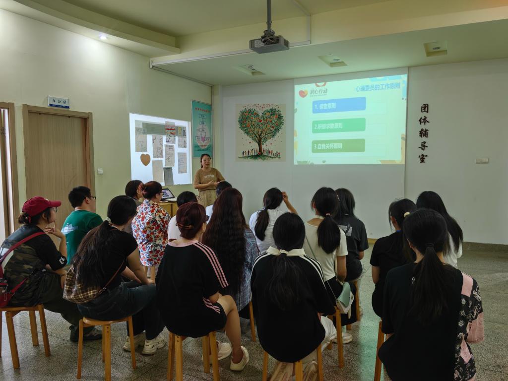 为增强心理委员的责任感与使命感,进一步加强心理健康教育朋辈队伍建设,保障学生心理的早期干预和及时引导,9月12日中午,学工处在校心理咨询室组织了全体24级新生班级及三年制班级心理委员的新学期首次培训。培训由学工处副处长高柳莺主持,心理咨询室王宇慧老师主讲,储淑雅、申宏浩两位老师组织协调,16名心理委员参加培训。