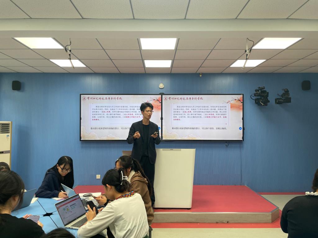 工作要干好,宣传也要做好。为进一步加强团学组织宣传队伍建设,提升宣传工作质量,团学共建部门宣传工作培训会议在校录播室顺利召开,鲁峥、余嫚、沈江涛老师以及团学组织办公室、秘书处、宣传部全体成员参加,会议由余嫚老师主持。