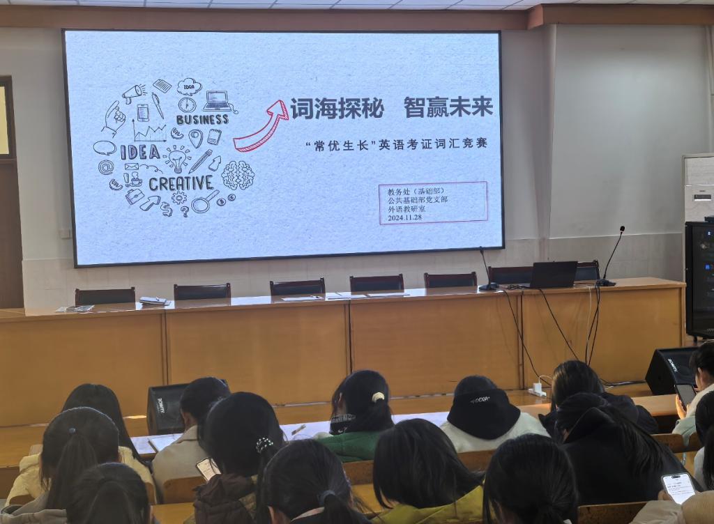 为激发学生备考英语等级考试的积极性,营造良好的英语学习氛围,教务处、公共基础部党支部和外语教研室联合组织了主题为“词海探秘,智赢未来”的英语考证词汇竞赛。竞赛于11月28日下午在5503教室顺利举行,吸引了全校学生积极参与。