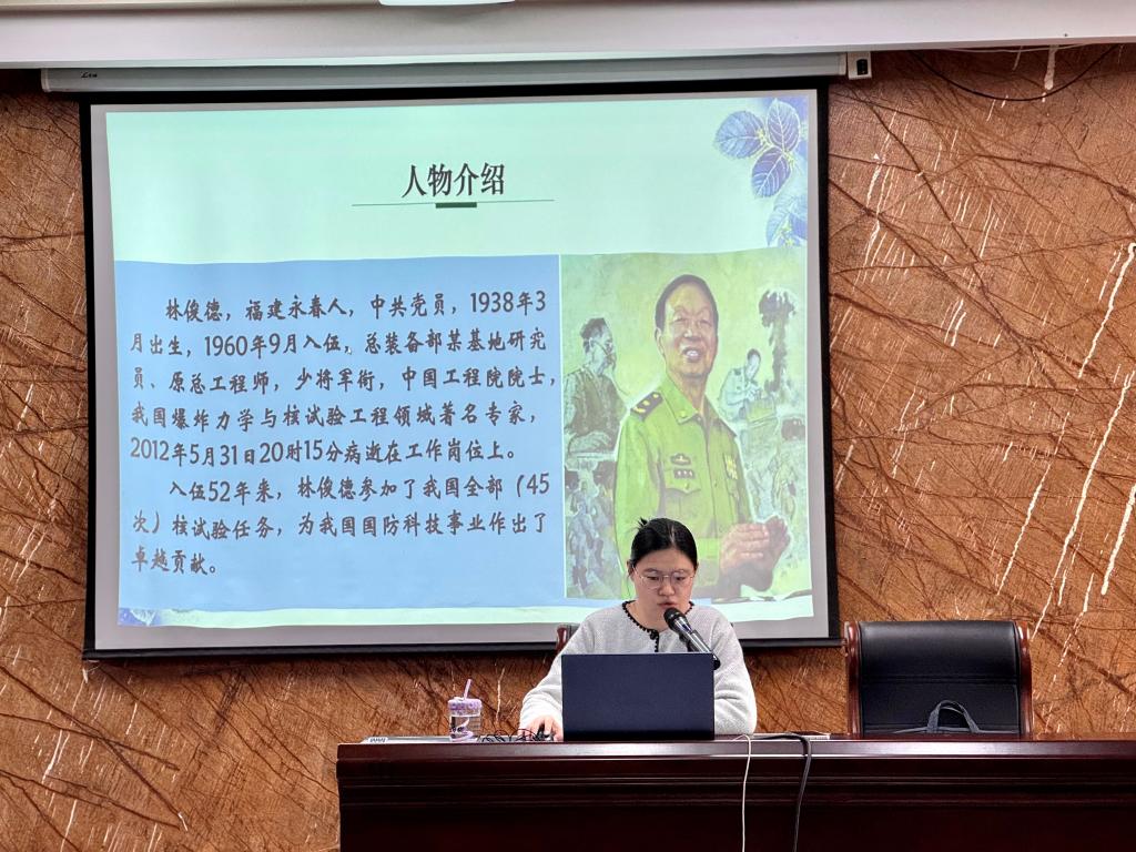 李可可老师以林俊德院士的崇高精神与卓越贡献为切入点,生动讲解了马克思主义哲学原理。她通过林俊德院士献身国防事业、勇攀科研高峰的人生经历,深入阐释了“用发展的眼光看问题”的唯物辩证法原理;结合林院士始终坚持实事求是、求真务实的科学精神,深入解读了“坚持一切从实际出发”的辩证唯物主义原理;通过林院士扎根戈壁、无私奉献的感人事迹,细致剖析了“在奉献社会中实现个人价值”的历史唯物论原理。
