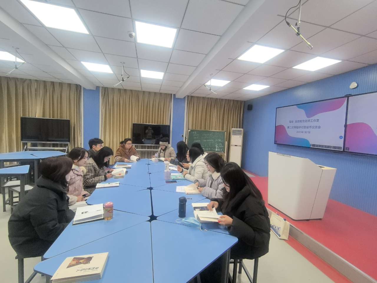 1月7日,马华家庭教育名师工作室在2201智慧教室举行第五次活动。工作室全体成员参加活动。本次活动聚焦《家为何会伤人》一书进行读书交流研讨。