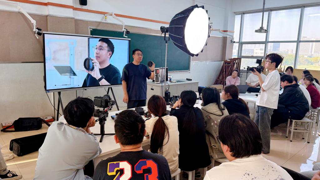 程经理详细介绍了各类摄影器材,结合实际案例讲解了它们的特点与适用场景;深入说明了电影机、摇臂等专业设备的使用方法,融入行业经验阐释了光圈选择与光线运用的技巧,帮助同学们全面、深入认知影视制作。