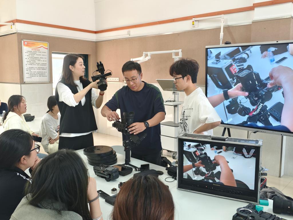 同学们分组开展实践操作,专注学习相机与稳定器的连接及调试。程经理全程耐心指导,确保每位同学都能切实掌握基本操作要领。