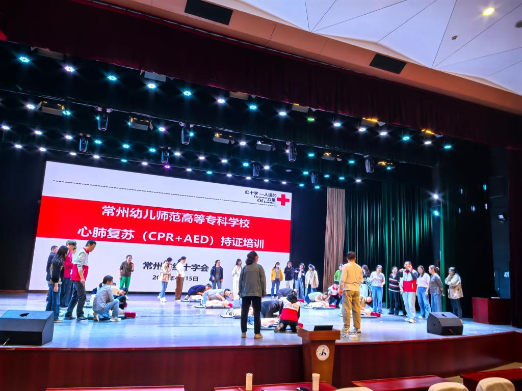 为全面普及应急救护知识,增强教职工突发事件处置能力,4月15日,多盈(中国)与市红十字会联合举办的教工专场CPR+AED急救培训在演播厅举行,培训重点围绕心肺复苏、自动体外除颤仪(AED)使用以及气道异物梗阻救护流程展开。