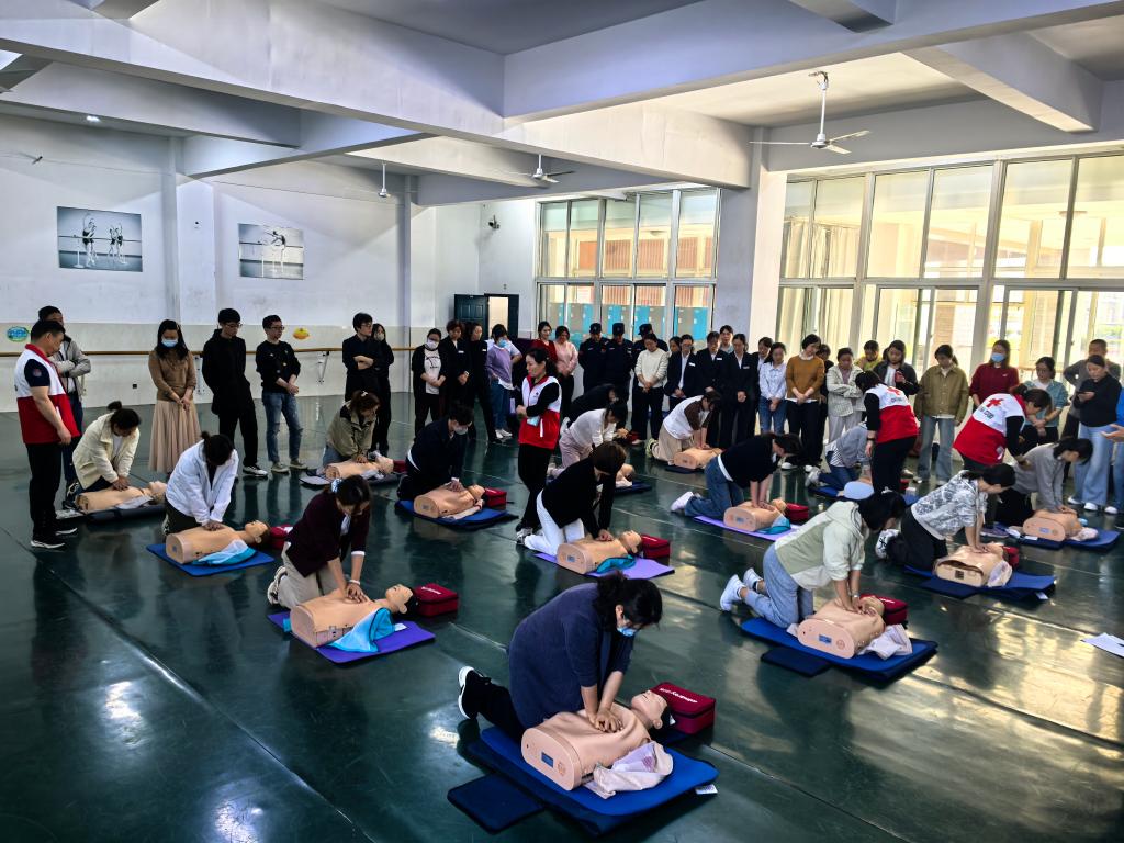 在实践环节,导师“一对一”“手把手”指导参训人员反复练习心肺复苏和AED操作,教职工们切身感受科学、规范施救的重要价值。培训结束后,通过考核的学员将获得红十字救护员证书,为进一步保障校园安全增添坚实力量。