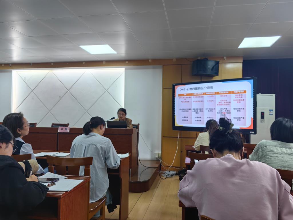 黄静副教授为全体班主任、辅导员及心理教师开展《心理异常学生的识别与谈心技巧》专题讲座,通过情景模拟和案例解析,演示以倾听、共情获得学生信任、发现学生异常的方法。她反复强调“早发现、早干预”,指出专业与关怀并重才能有效帮助学生。