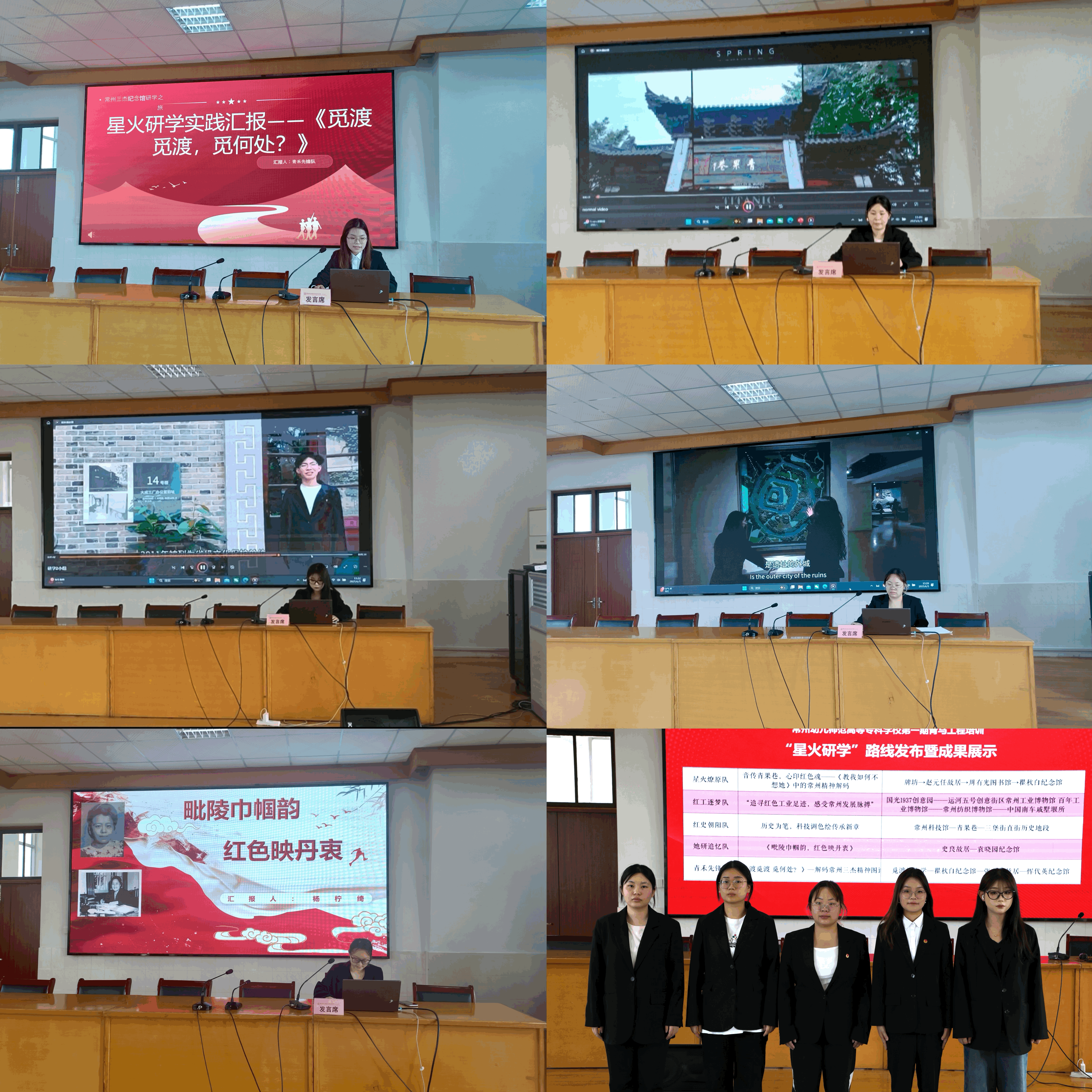 活动伊始,五个小组依次登台展示“星火研学”丰硕成果:“星火燎原队”解码青果巷旋律中的常州精神,“红工逐梦队”追寻城市发展的红色工业足迹,“红史朝阳队”以科技和文化的视角探索历史传承新路径,“她研追忆队”展现毗陵巾帼的丹心风采,“青禾先锋队”深度解读常州三杰精神图谱。学员们以视频+汇报形式生动呈现实践真知,赢得现场阵阵掌声。