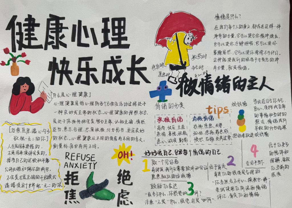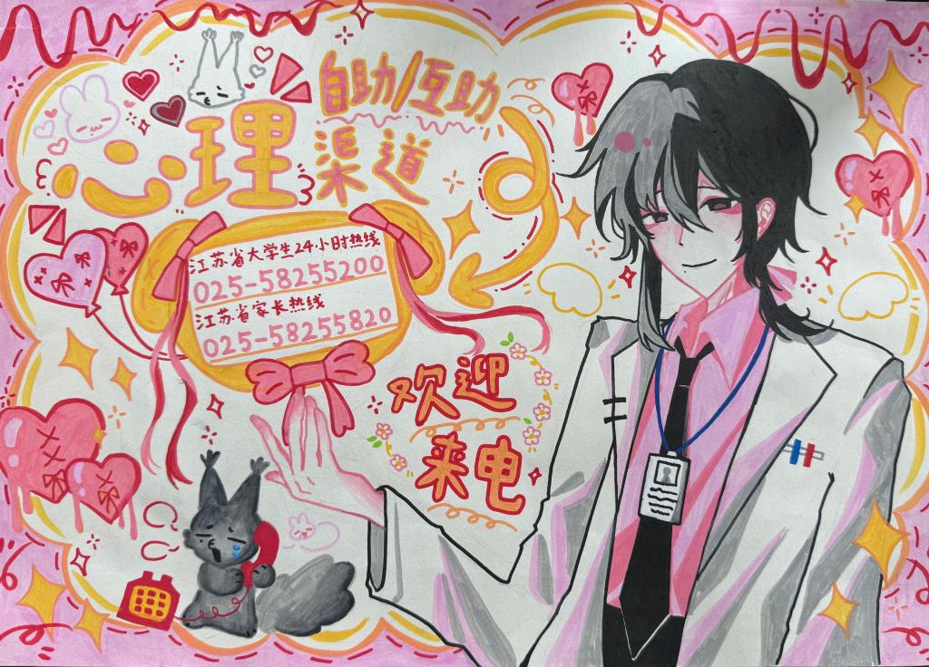 在“科普宣传”主题下,同学们创意性地绘制了“心理自助互助渠道”宣传手卡,传达了科学、理性、正确地看待心理问题的意识,展现了积极自助、勇于求助的观念,营造了良好和谐的校园氛围。