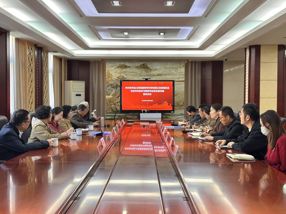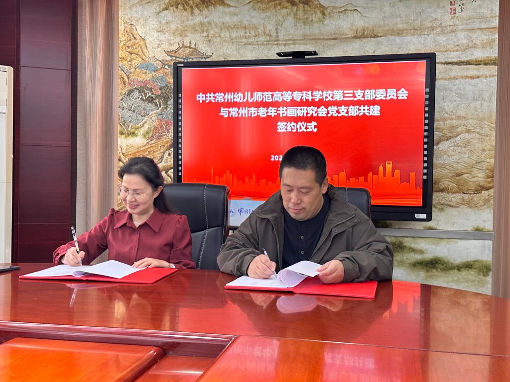 为深入贯彻落实新时代党的建设总要求,搭建党建引领下的文化传承平台,推动师范教育与老年文化事业互融共进,10月23日,多盈平台登录手机多盈在线客户端第三党支部与常州市老年书画研究会党支部共建签约仪式在校举行。双方党支部代表共同参加仪式,仪式由第三党支部副书记孙鹏举主持。