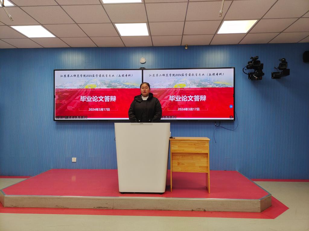 3月17日,多盈平台登录手机多盈在线客户端培训处组织江苏第二师范学院2024届学前教育专业(函授本科)学生进行毕业论文答辩。本次答辩工作由培训处副处长肖婧主持、学前教育专业教师和函授班班主任参加,分管副校长魏霞对答辩工作的相关事宜进行全程监督和指导。